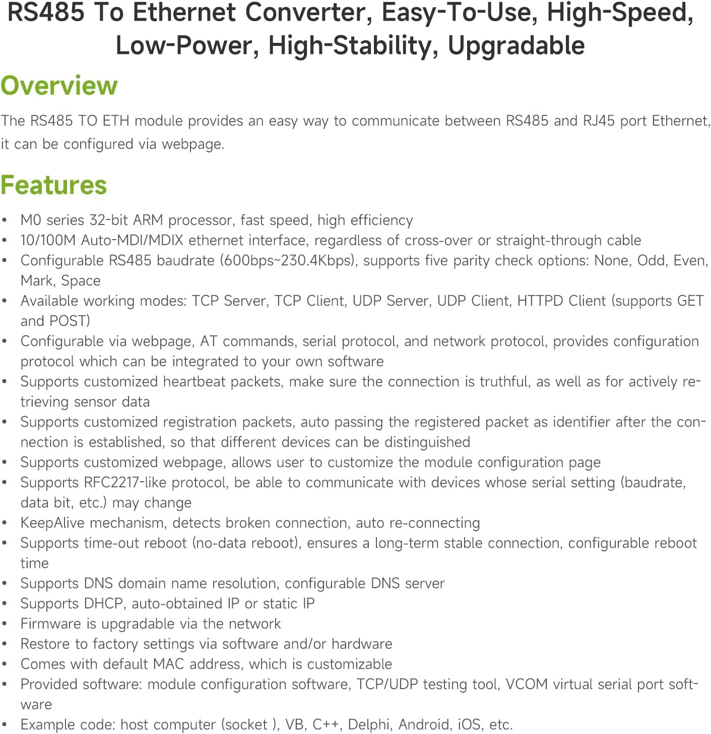 • Our RS485 to Ethernet converter features low power consumption, fast speed and high stability