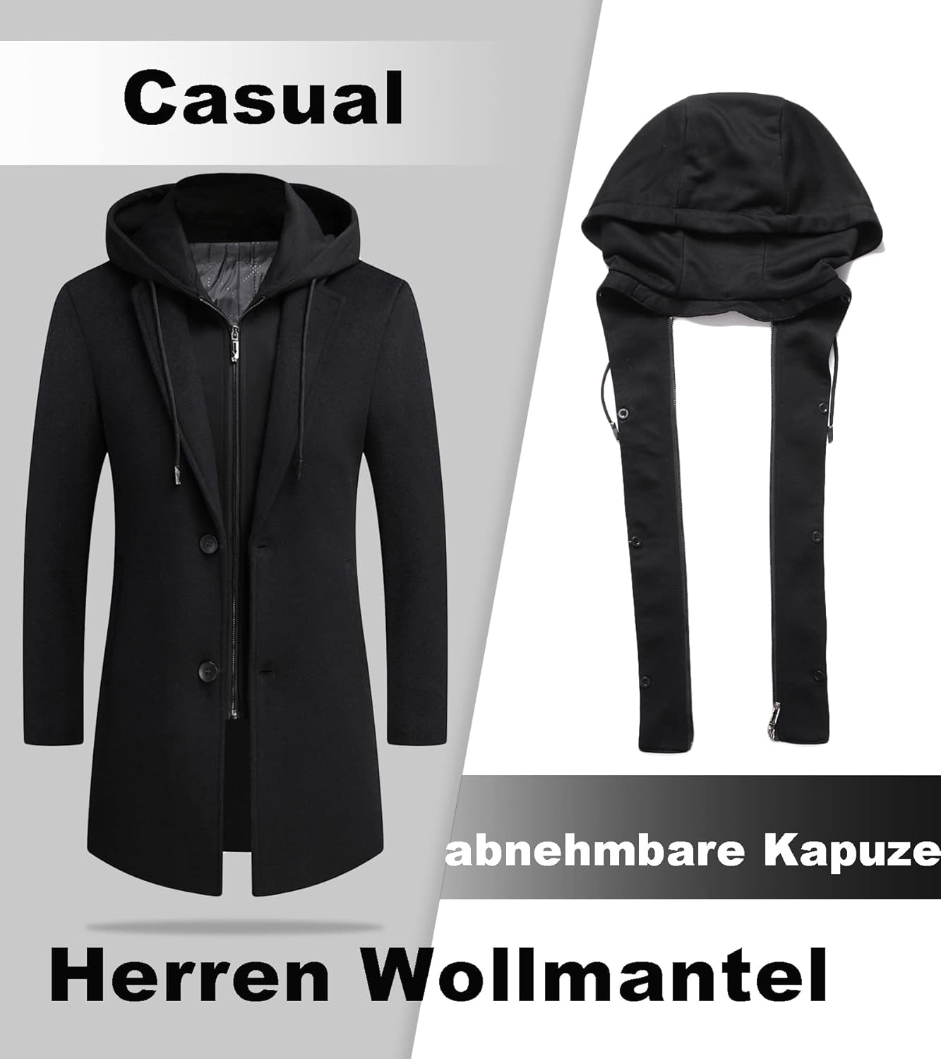 - Moderne und slim fit herrenmantel mit Unifarben Muster, klassisch Stehkragen, Langarm, Einreiher, doppelt Seitliche Eingrifftaschen und Innentasche, sehr funktionell
