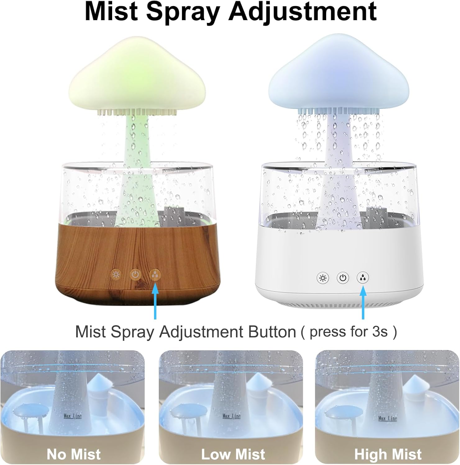 - 【LUFTBEFEUCHTER】 Mit seinem bezaubernden Design in Pilzwolkenform erhöht dieser Schlafzimmerluftbefeuchter die Luftfeuchtigkeit, indem er das Phänomen des Regens nachahmt. Er kann Sie zu jeder Jahreszeit nicht nur als Luftbefeuchter, sondern auch