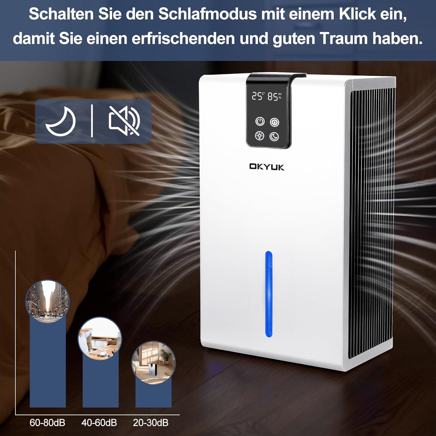 - 【 Luftentfeuchter Elektrisch】 Der OKYUK-Luftentfeuchter entfernt Feuchtigkeit schnell und leise mit fortschrittlicher Halbleitertechnologie und einem grossen 99-Unzen-Wassertank. Die Luftentfeuchter haben eine maximale Entfeuchtungsfläche von bis zu