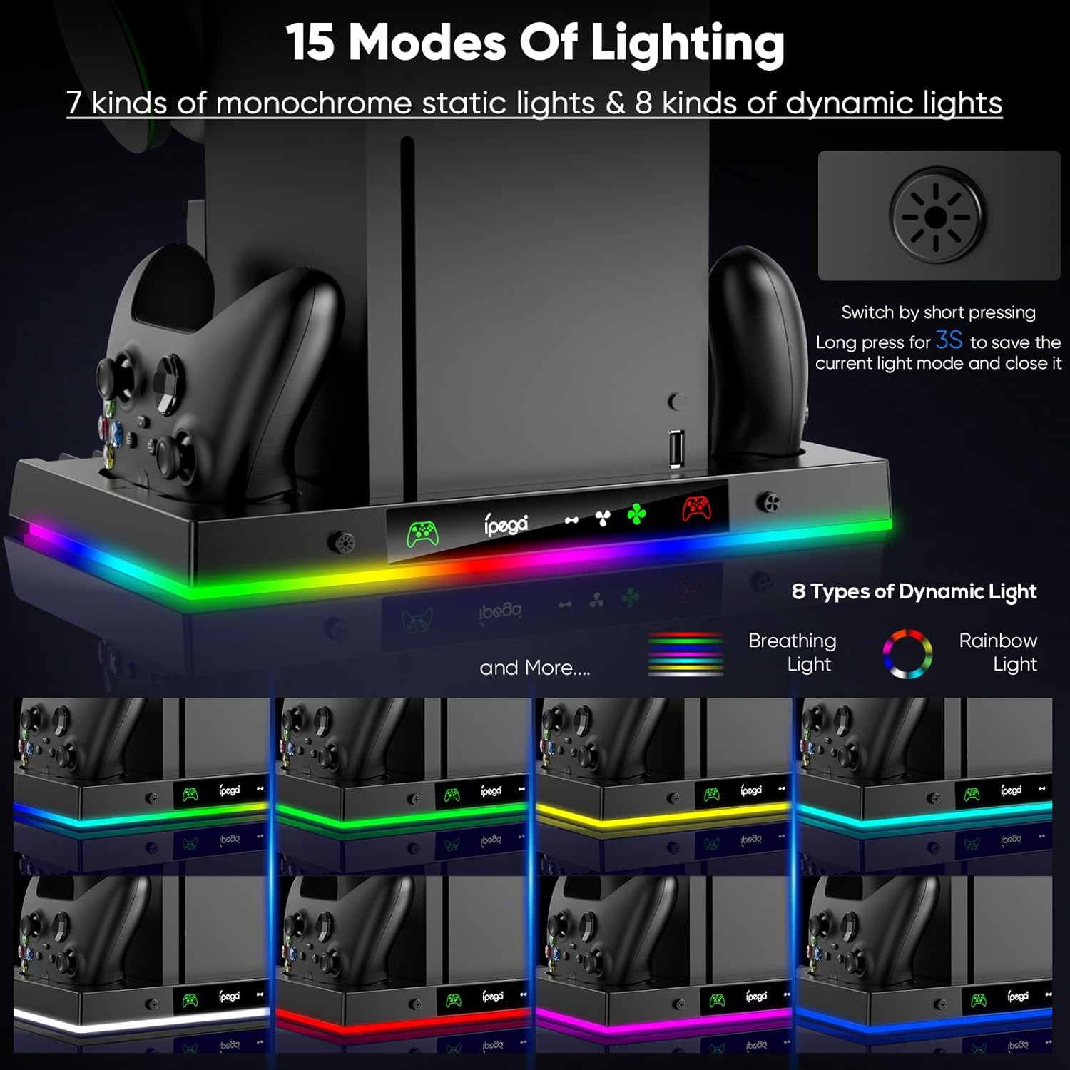 - 15 RGB-Beleuchtungseffekte: Der Kühlständer für Xbox Series X ist mit 15 verschiedenen Farben von RGB-Atmosphäre Lichteffekten entworfen. Sie können die Lichtfarbe nach Ihren eigenen Bedürfnissen wählen. Eine Fülle von Lichteffekt-Kombinationen