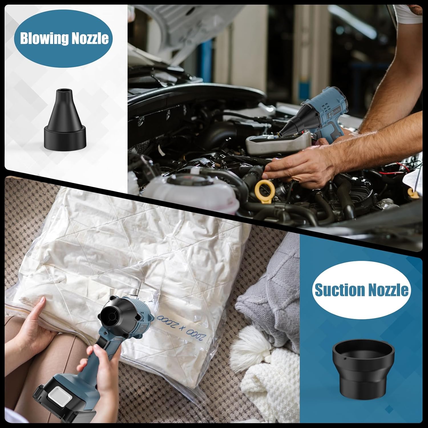 - Multifunktional: Das Paket wird mit 3-Düsen zum Entstauben, Aufblasen oder Absaugen geliefert. Die Staubentfernungsdüse richtet sich an schwer zugängliche Stellen, die Aufblasdüse bläst schnell verschiedene aufblasbare Zahnräder auf und die