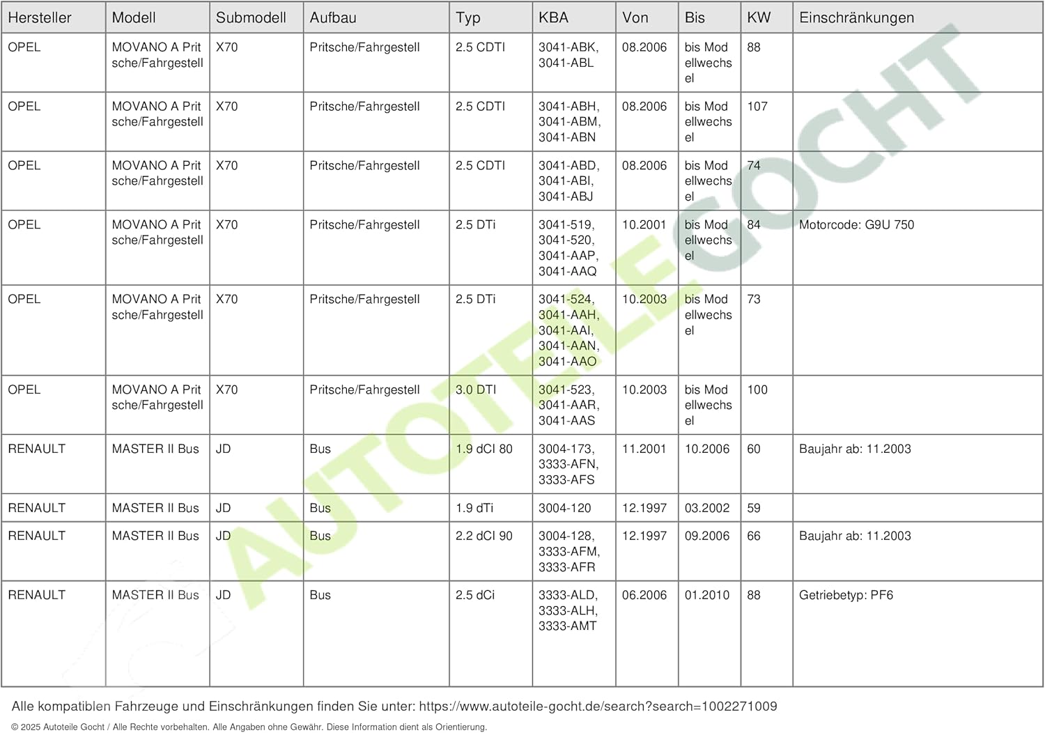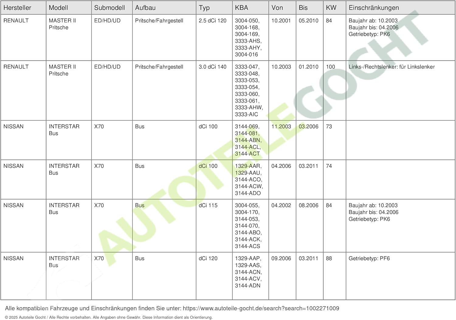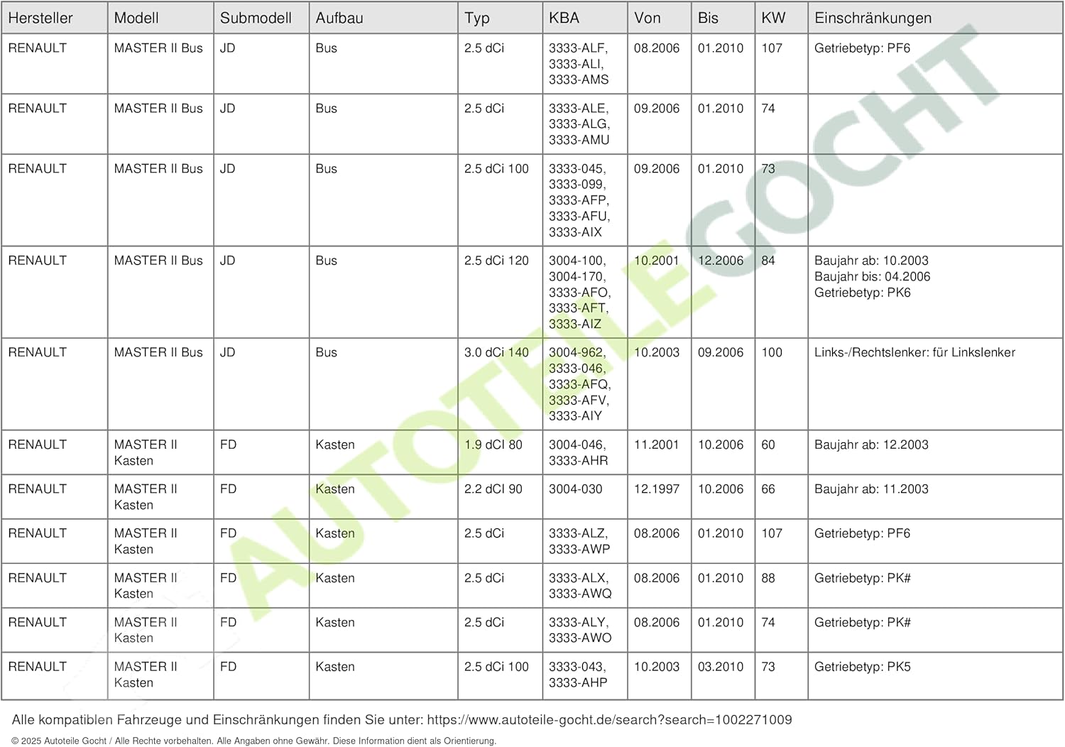 - OE VERGLEICHSNUMMERN: 234M0100, 460068, 813010210, FT68036, NSPRE004, PRH4185, SKMCC0580099, 3061000QAF, 4416070, 4416169, 8200376458, 8200459155, 93185028, 93185430