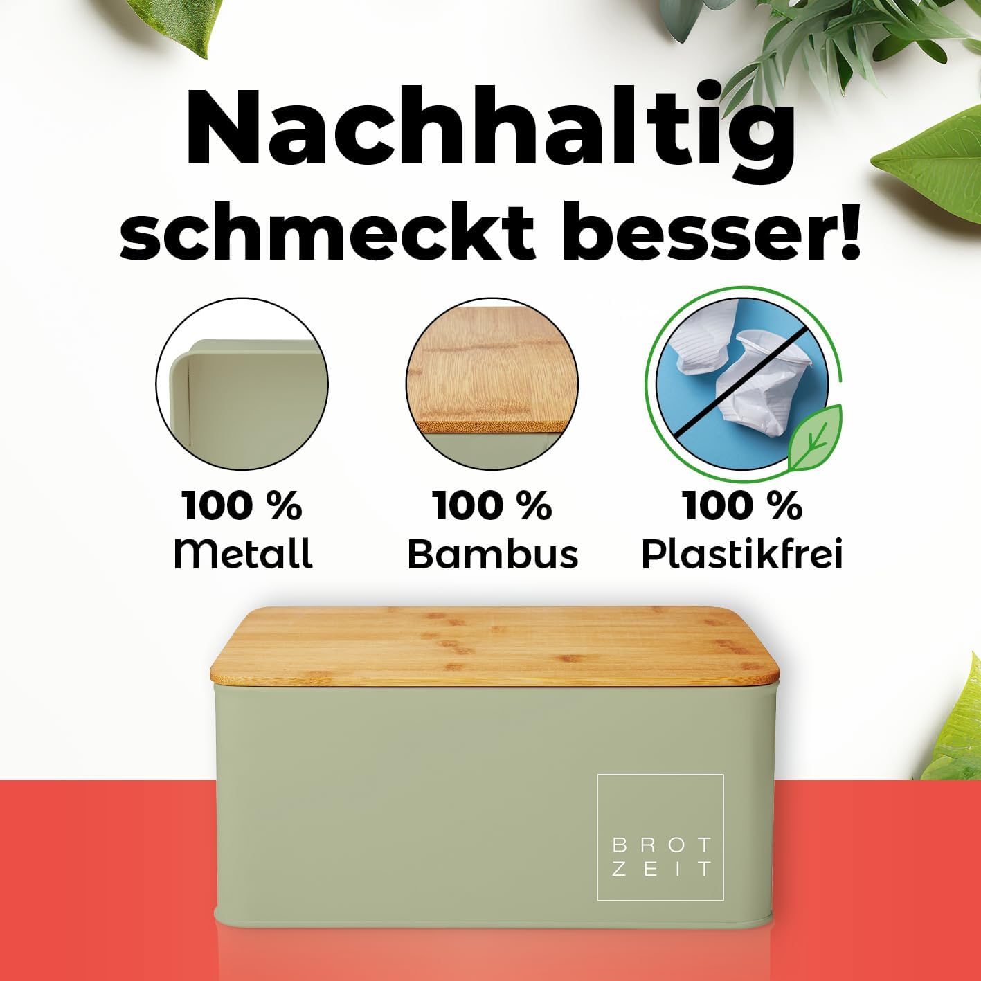 • VARIABEL - Ein praktisches „2 in 1“-Set: Der Bambusdeckel ist auch als robustes Schneidebrett verwendbar und macht diesen Brotkasten multifunktional