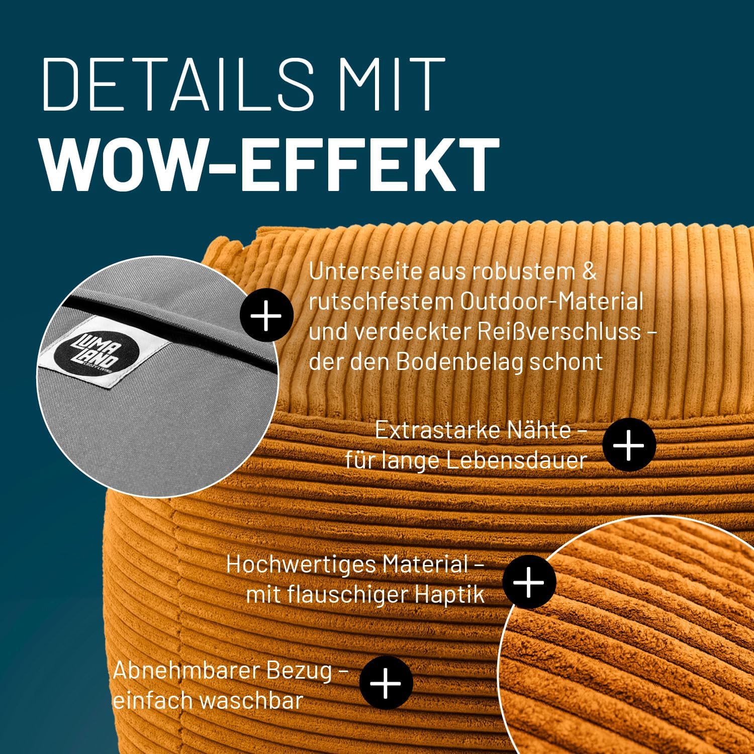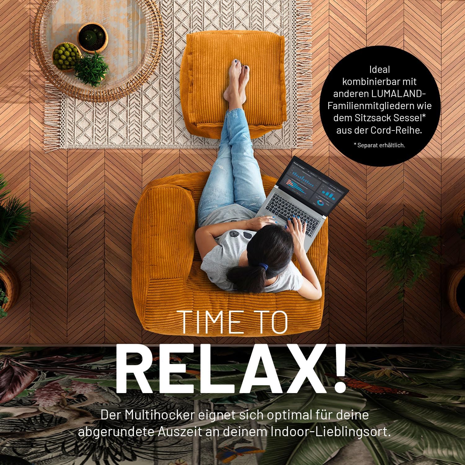 - BOHO-WOHLFÜHL-STYLE: Der Hocker sorgt dank moderner & gerippter Vintage-Textur für gemütliches Home-Styling. Dank verschiedener Trendfarben passt er ideal zu anderen LUMALAND-Möbeln (separat erhältlich). Stell dir jetzt deine eigene XXL Cord