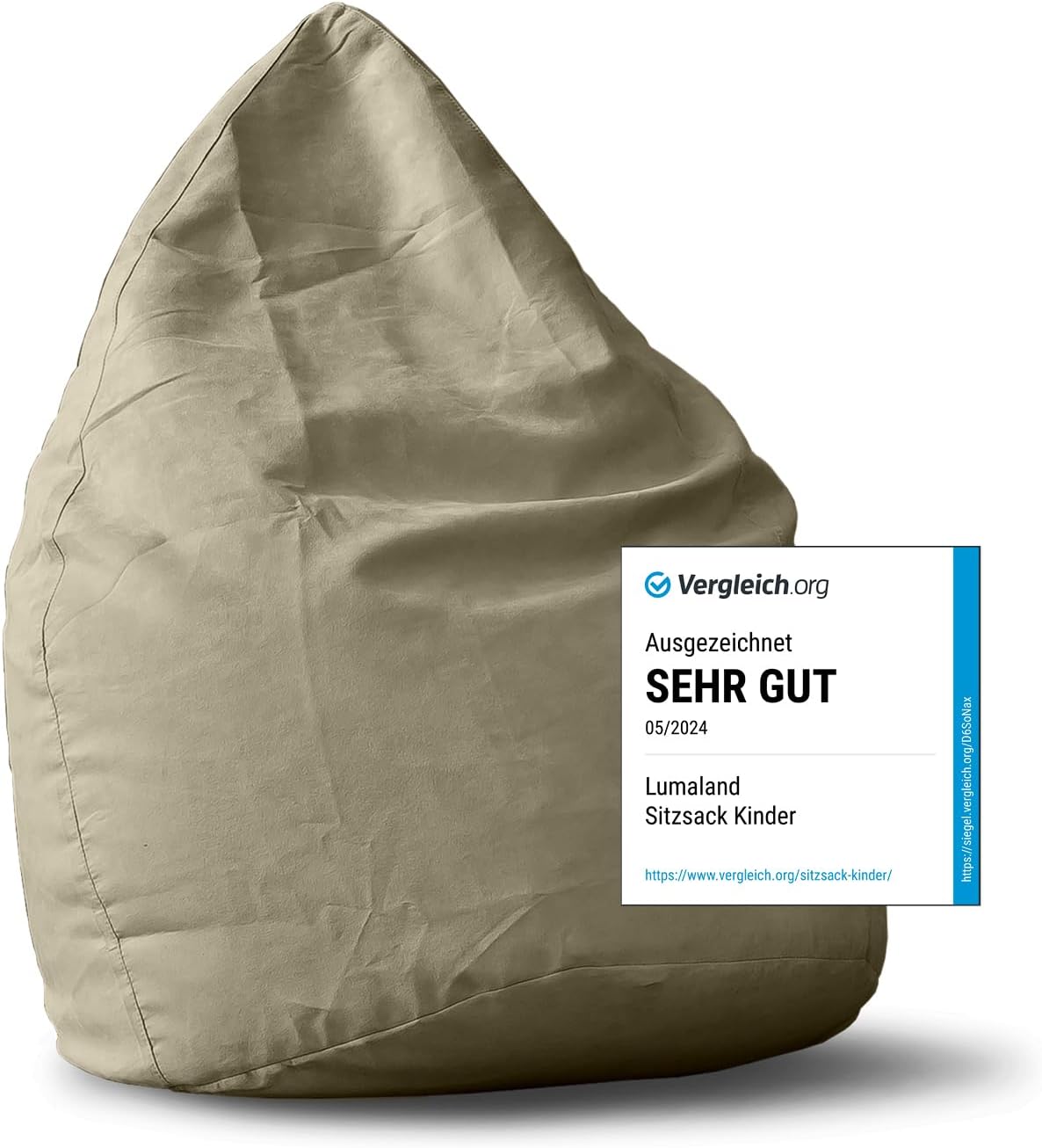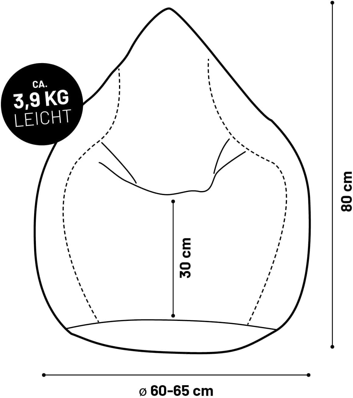 • Lumaland stylischer XL PLUS Sitzsack - für Wohnräume aller Art und einen modernen Lebensstiel. Er besitzt eine Höhe von ca. 80 cm, einen Durchmesser von ca. 60-65 cm und eine Sitzhöhe von ca. 30 cm.