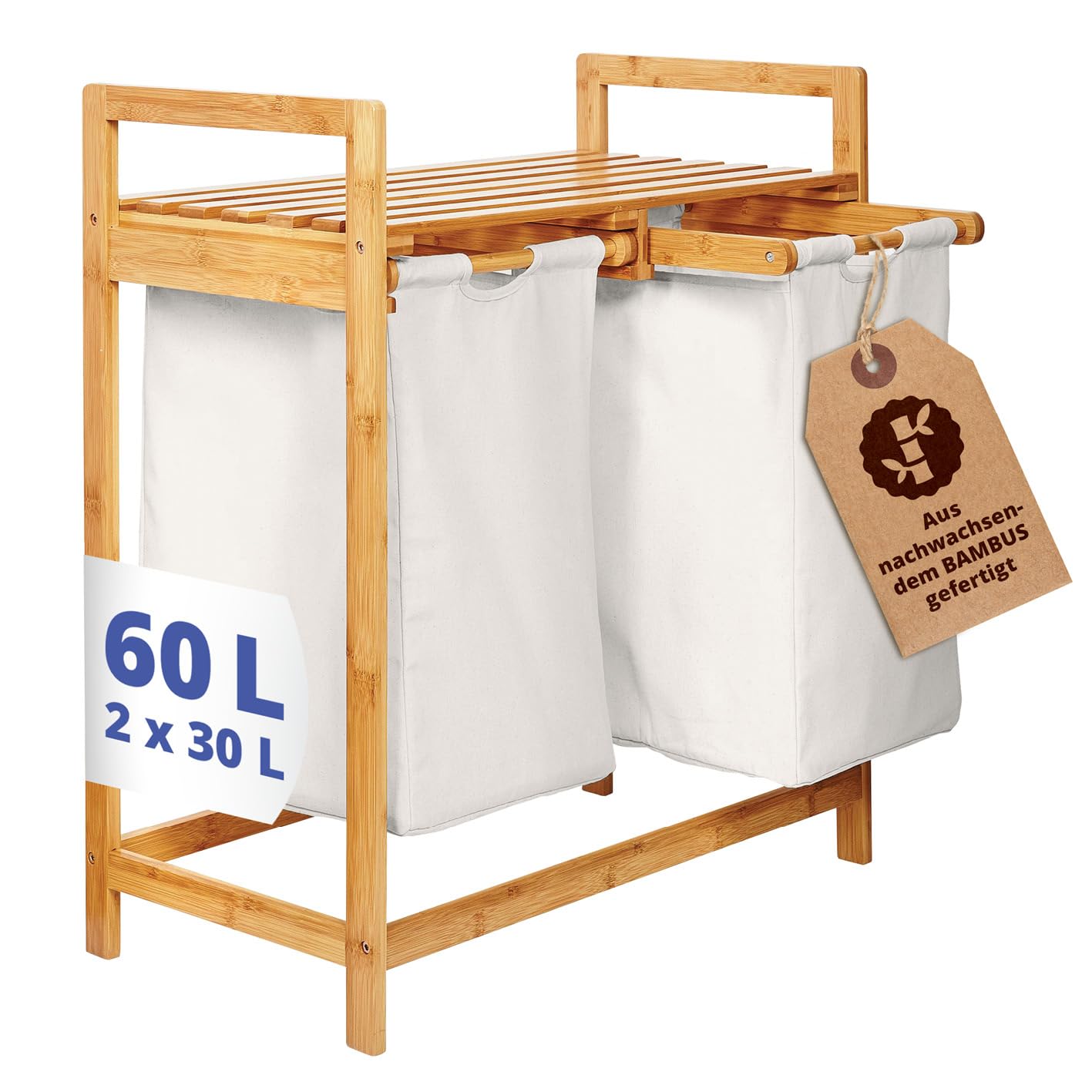 - Der Wäschesortierer ist mit Schienen ausgestattet womit Sie die Wäschesäcke zum Befüllen und Entleeren hervorziehen können, die Säcke besitzen ein Auffangvolumen von ca. 60 Liter und verbergen Ihre Schmutzwäsche vor Blicken. Einfache Pflege, lange Haltbarkeit: Bei 30° C lassen sich die abnehmbaren Baumwollfächer problemlos in der Waschmaschine waschen - lange Haltbarkeit ohne Qualitätsverlust garantiert