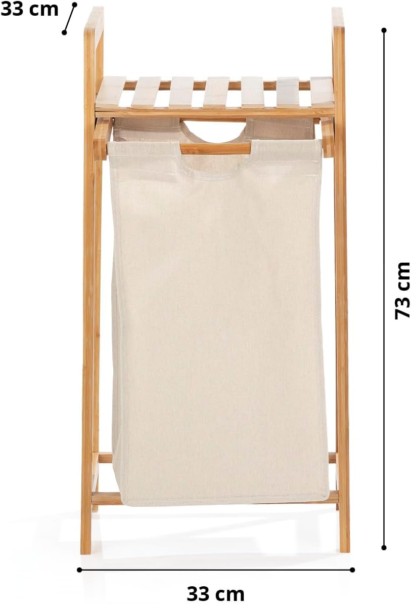 - STILVOLL & DEKORATIV - Hochwertiger Bambus Wäschekorb mit Wäsches aus einem Polyester/Baumwollgemisch, mit leichter innenseitiger Beschichtung für eine einfache Reinigung. Abnehmbare Stofffächer mit Klettverschluss: Dank des professionell
