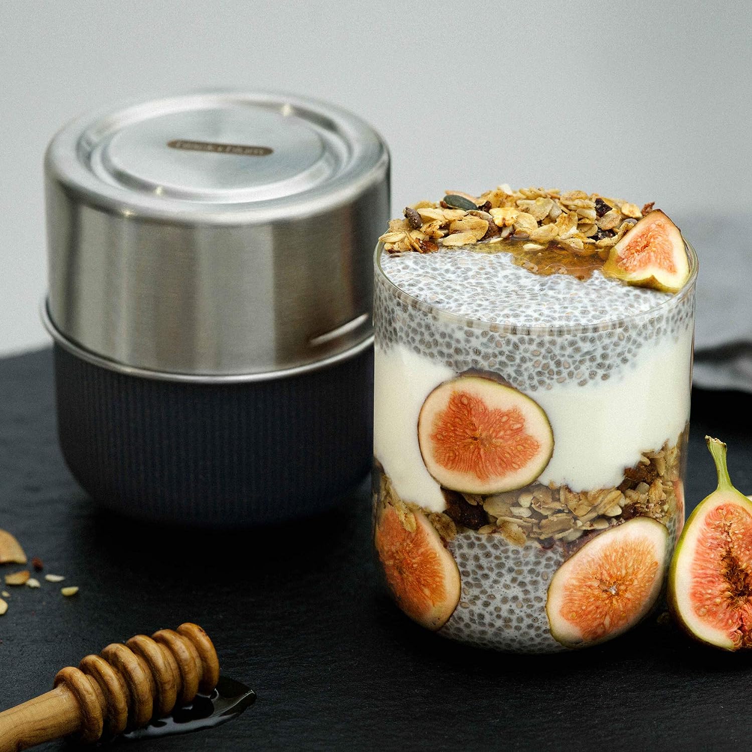 • VIELSEITIG: Der Glas Behälter ist perfekt geeignet als Joghurtbecher to go, Overnight Oats Glas, Salat to Go Box oder als Meal Prep Becher. Auch ideal als Suppenbehälter to Go und für andere Speisen und Snacks.