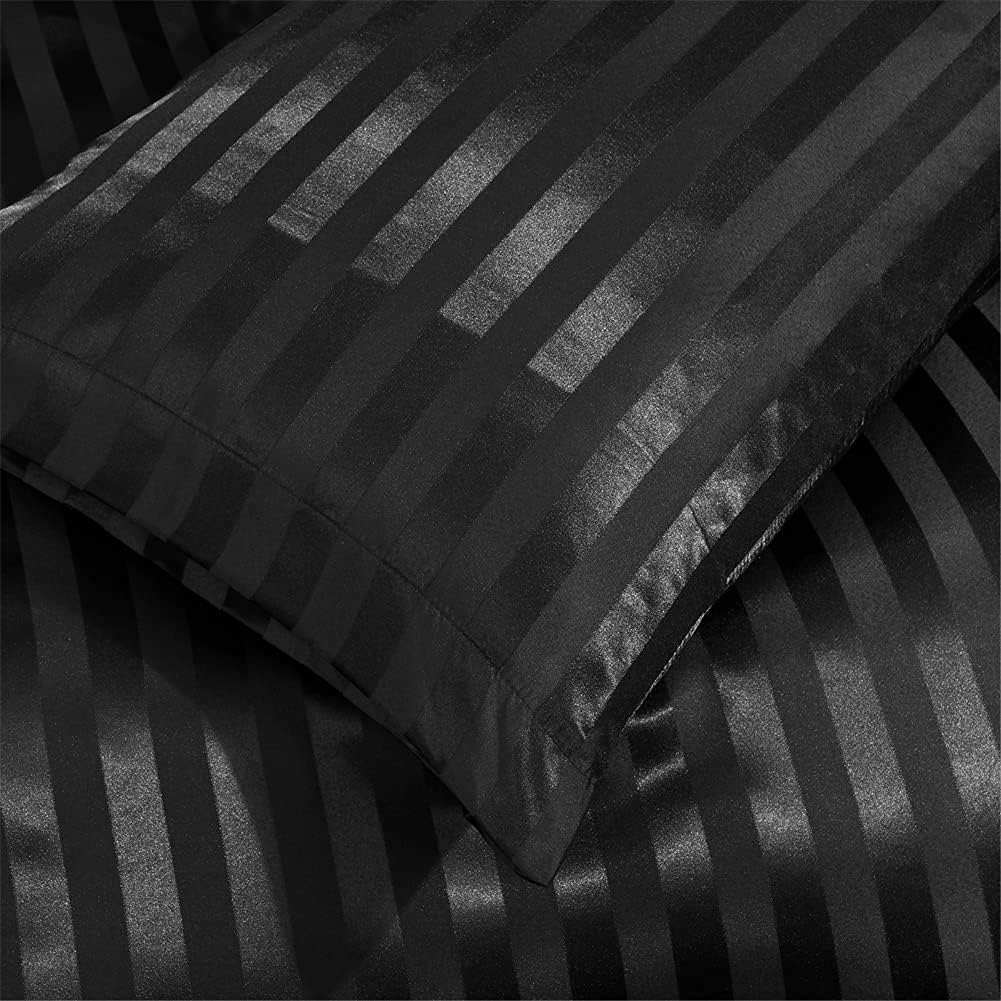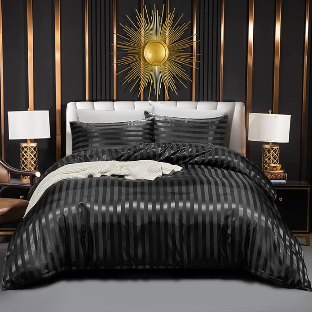 Luofanfei Bettwäsche Satin 135x200cm 4teilig Glänzend Glanzsatin Kühlende Schwarze Bettwäsche Set 13