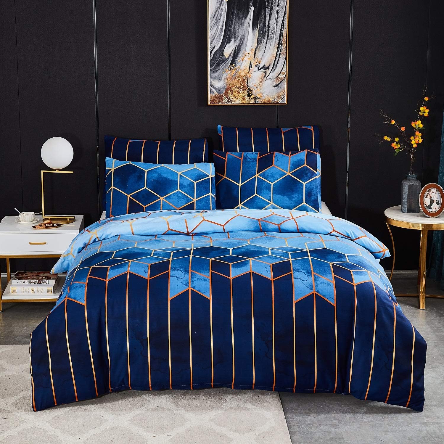 • 【Geometrische Bettwäsche】: Mit modernem doppelseitigem bedrucktem muster gestreifte Bettdeckenbezug Set.Einfacher,das Dekor zu ändern,wenn Sie möchten.