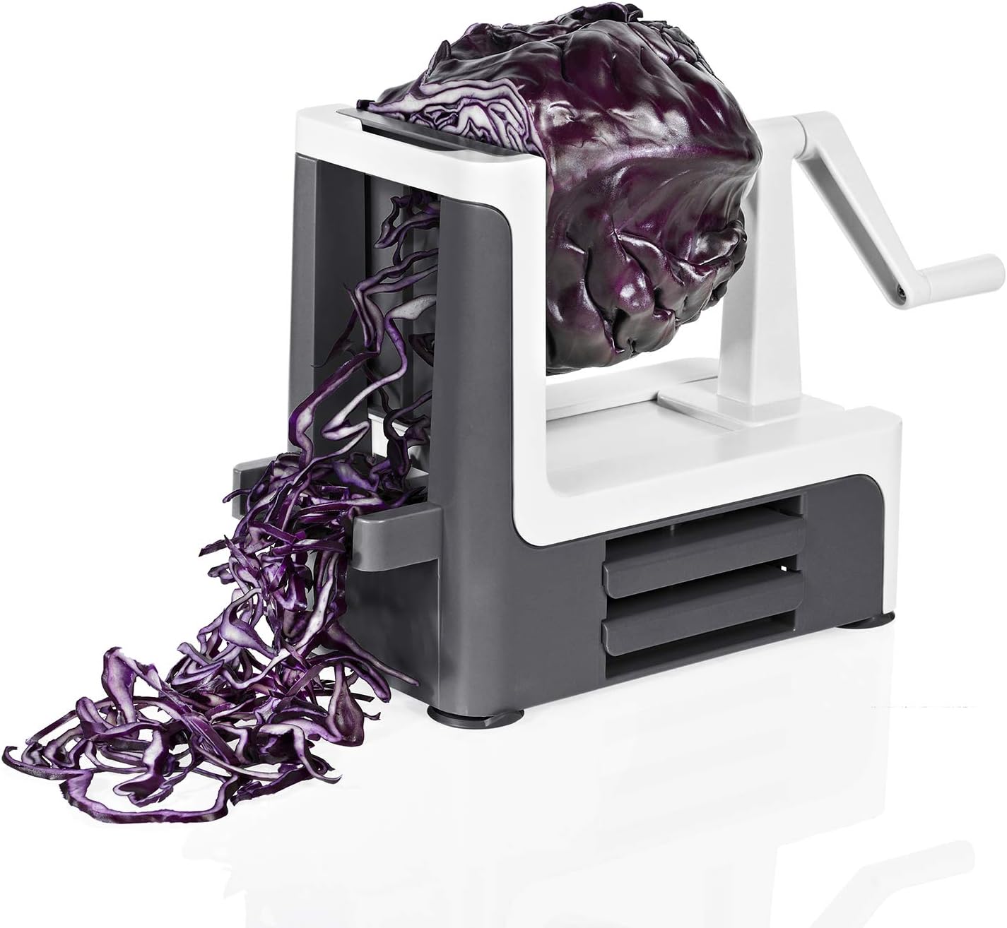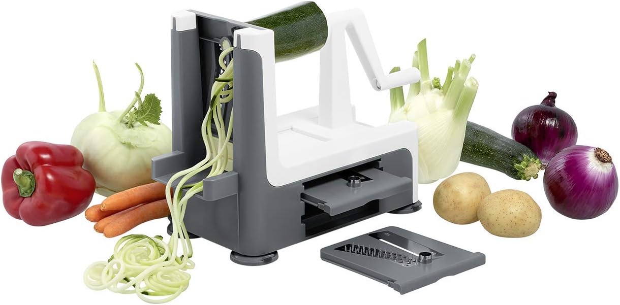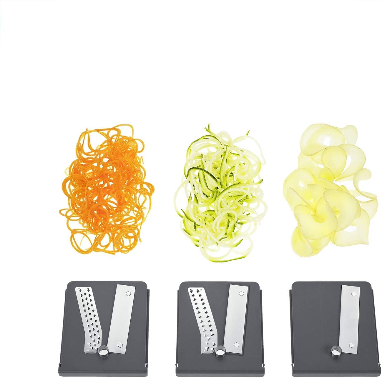 - Drei einfach austauschbare Messereinsätze für Spaghetti in 2 mm und 3mm Breite und Spiralen