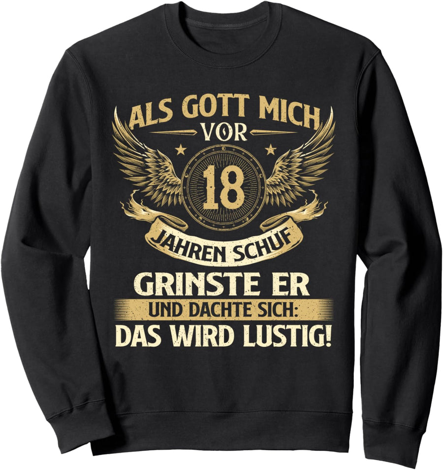 PRODUKTBESCHREIBUNGEN Das Birthday Motiv besteht aus dem Text Als Gott mich vor 18 Jahren schuf grinste er und dachte sich das wird lustig, welcher passend in das Design integriert ist. Dieses Geburtstags Produkt ist ein super Weihnachtsgeschenk oder Geburtstagsgeschenk für jemanden der 18 alt wird. Mehr