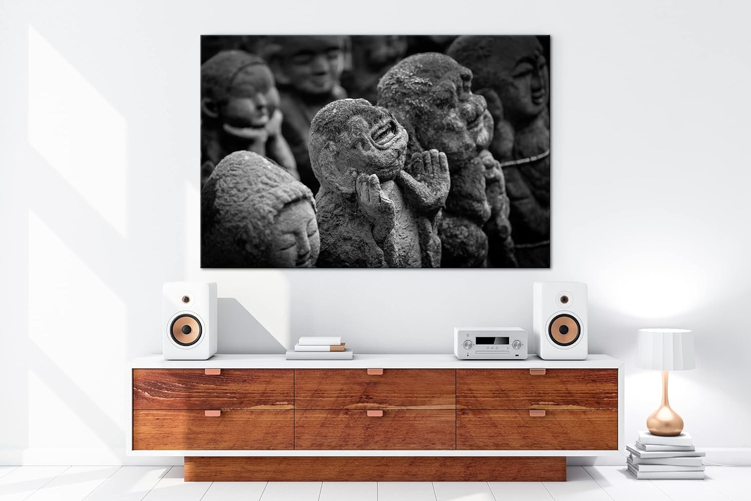 deyoli lustige, mit Moos bedeckte Buddha-Statue Effekt: Schwarz&Weiss,Format: 80x60 als Leinwandbild