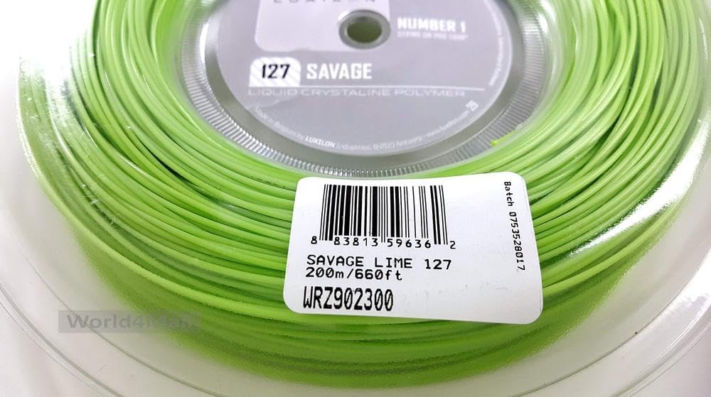 - Lieferumfang: Luxilon Tennissaite, Savage 127, Länge: 200 Meter, Durchmesser: 1,27 mm, Material: Liquid Crystalline Polymer, Farbe: Hellgrün, WRZ902200