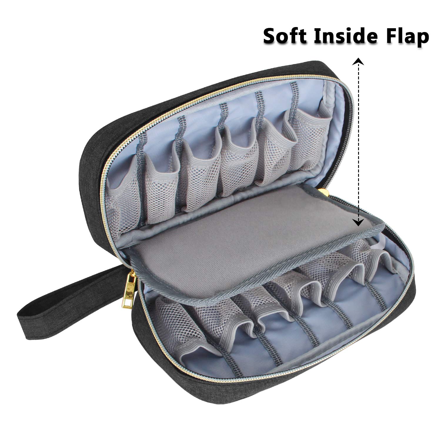 - 12 Fächer für 12 Flaschen Ätherische Öle (5ml-15ml). Es eignet sich auch für 10ml Rollerflaschen. Eine hintere flache Tasche zum Einlegen von Öffnern oder Etiketten.
