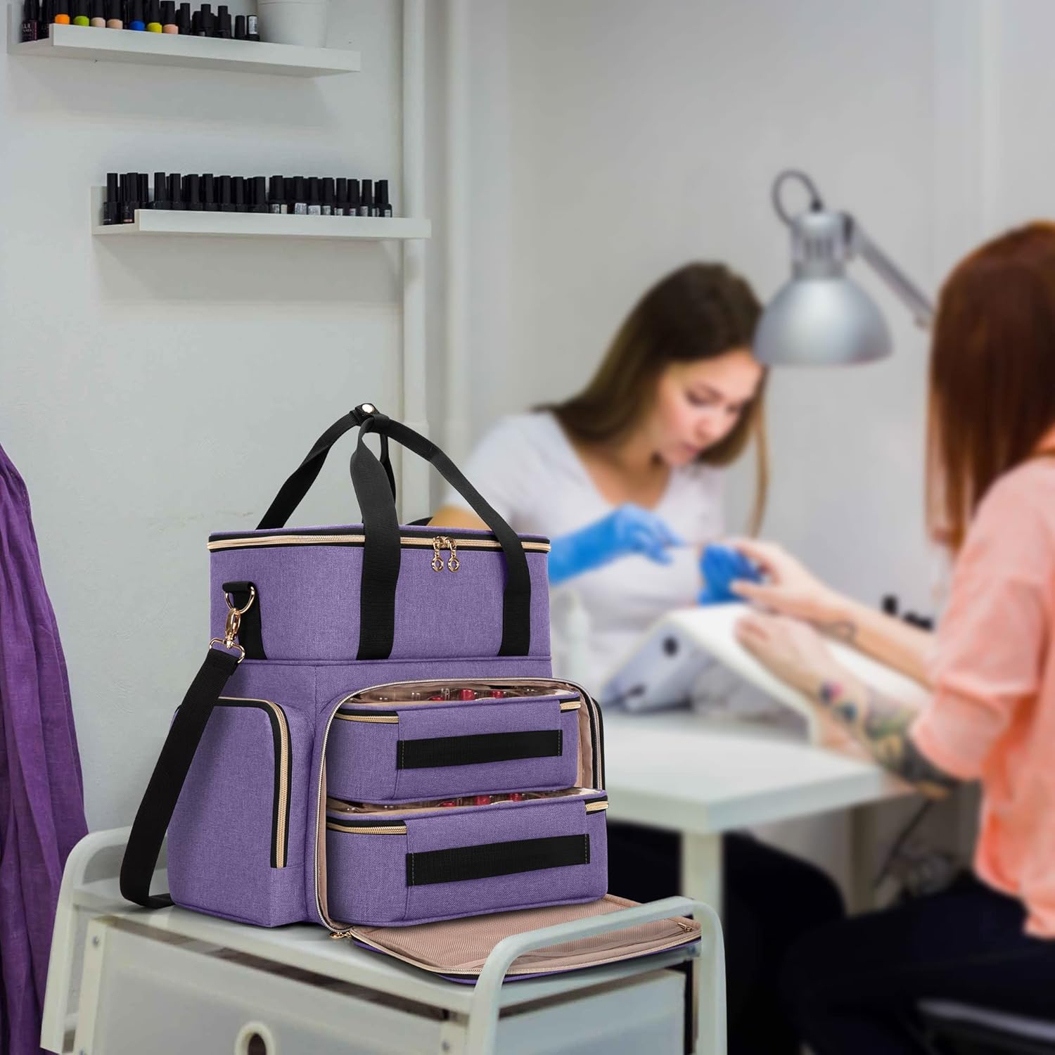 - NAGELLACK-AUFBEWAHRUNG: Das Hauptfach enthält 2 herausnehmbaren Nagellack-Beutel. Jede Tasche fasst bis zu 35 Fläschchen mit 15 ml/ 0,5 fl.oz Nagellack. Die Flaschenteiler im Beutel sind flexibel und abnehmbar.