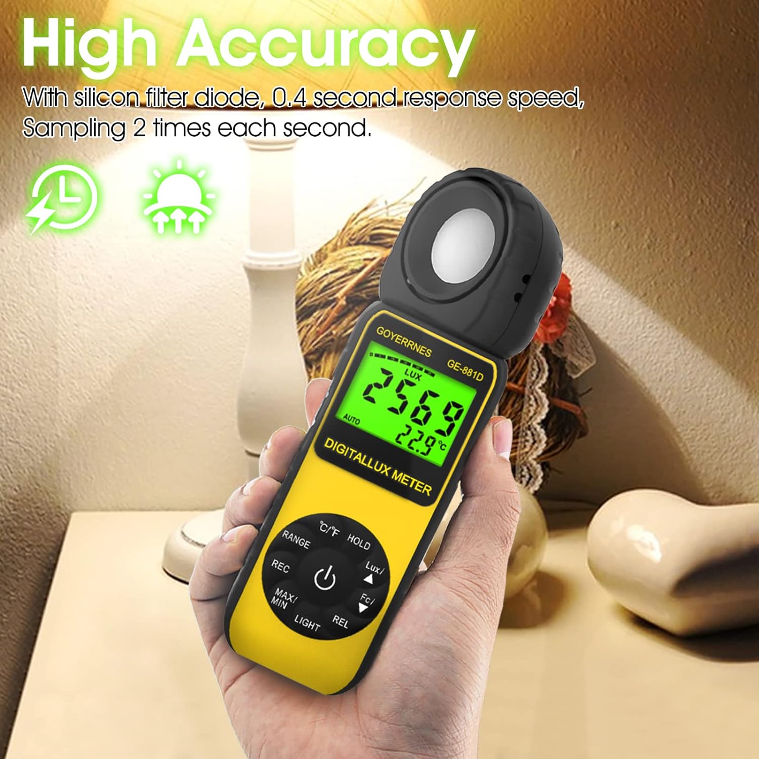- Über uns: GOYERRNES bietet eine 12-monatige sorgenfreie Garantie und eine 1-jährige erweiterte Garantie. Wenn Sie Fragen oder Anregungen zu unserem Belichtungsmesser haben, lassen Sie es uns bitte wissen, wir werden unser Bestes tun, Wir werden Ihre