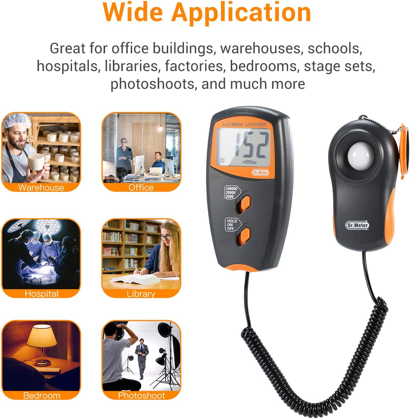 - 【3 Bereiche】: Dieser Belichtungsmesser verfügt über 4 Bereichseinstellungen, 2.000 Lux-Bereich: Messwert x 1; 20.000 Lux-Bereich: Messwert × 10; 100.000 Lux-Bereich: Messwert × 100