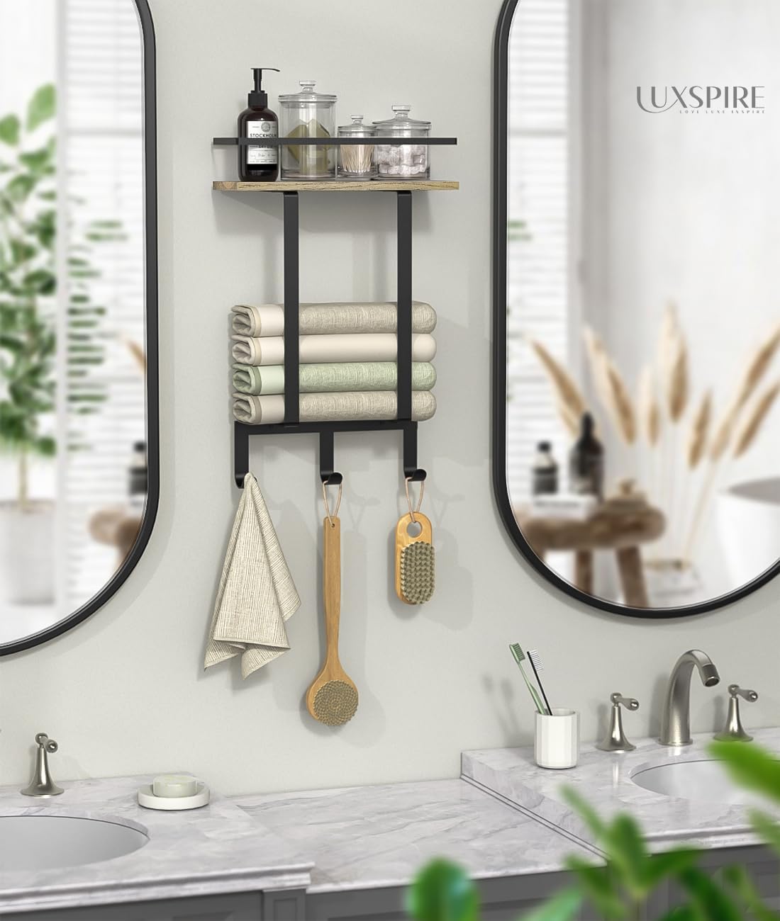 Luxspire Handtuchhalter Wand, Gästehandtuchhalter Badezimmer Handtuchregal mit Bohren Handtuchhaken
