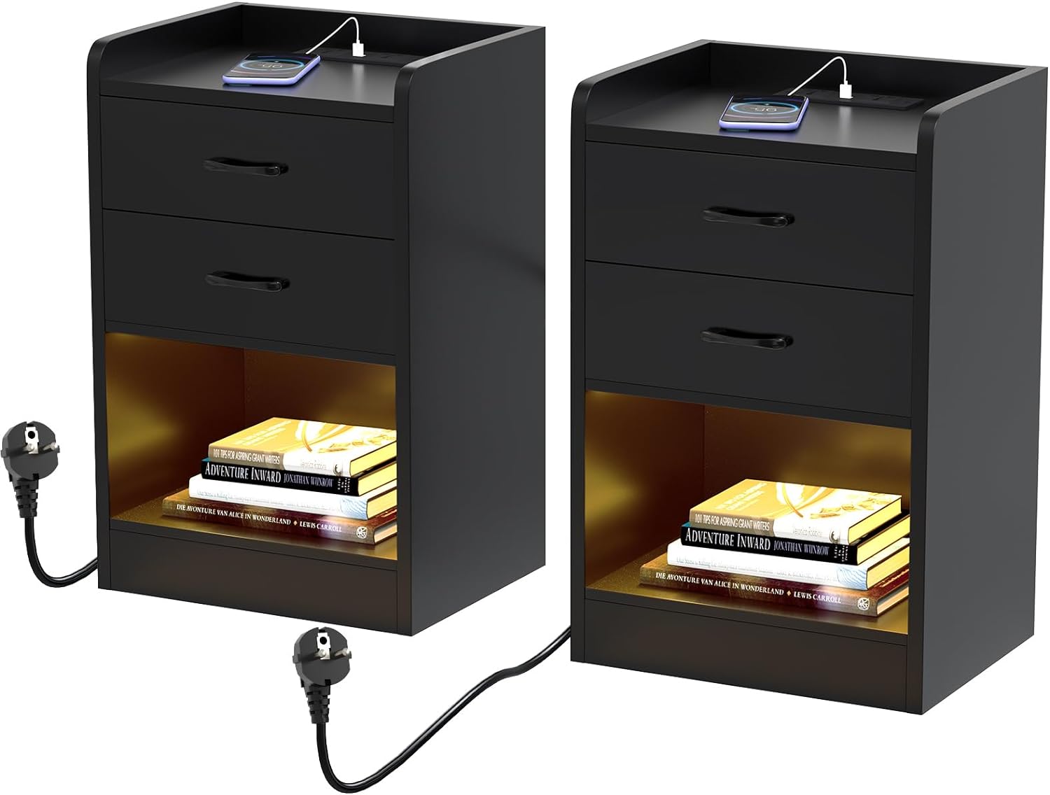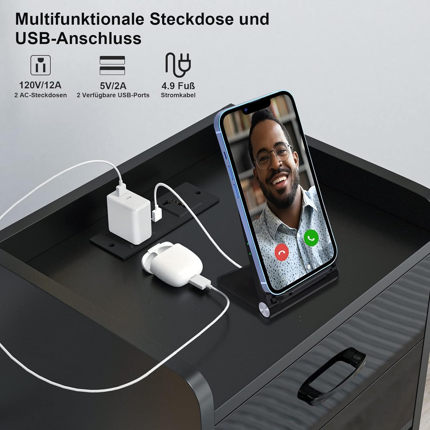 - 【Schwarz Nachttisch】Auf dem schwarzen Nachttisch können problemlos Geräte wie Mobiltelefone, Tablets, Schreibtischlampen, Miniventilatoren usw. platziert werden, was sehr praktisch und interessant ist. Mit dem 1.5m langen Kabel können Sie den