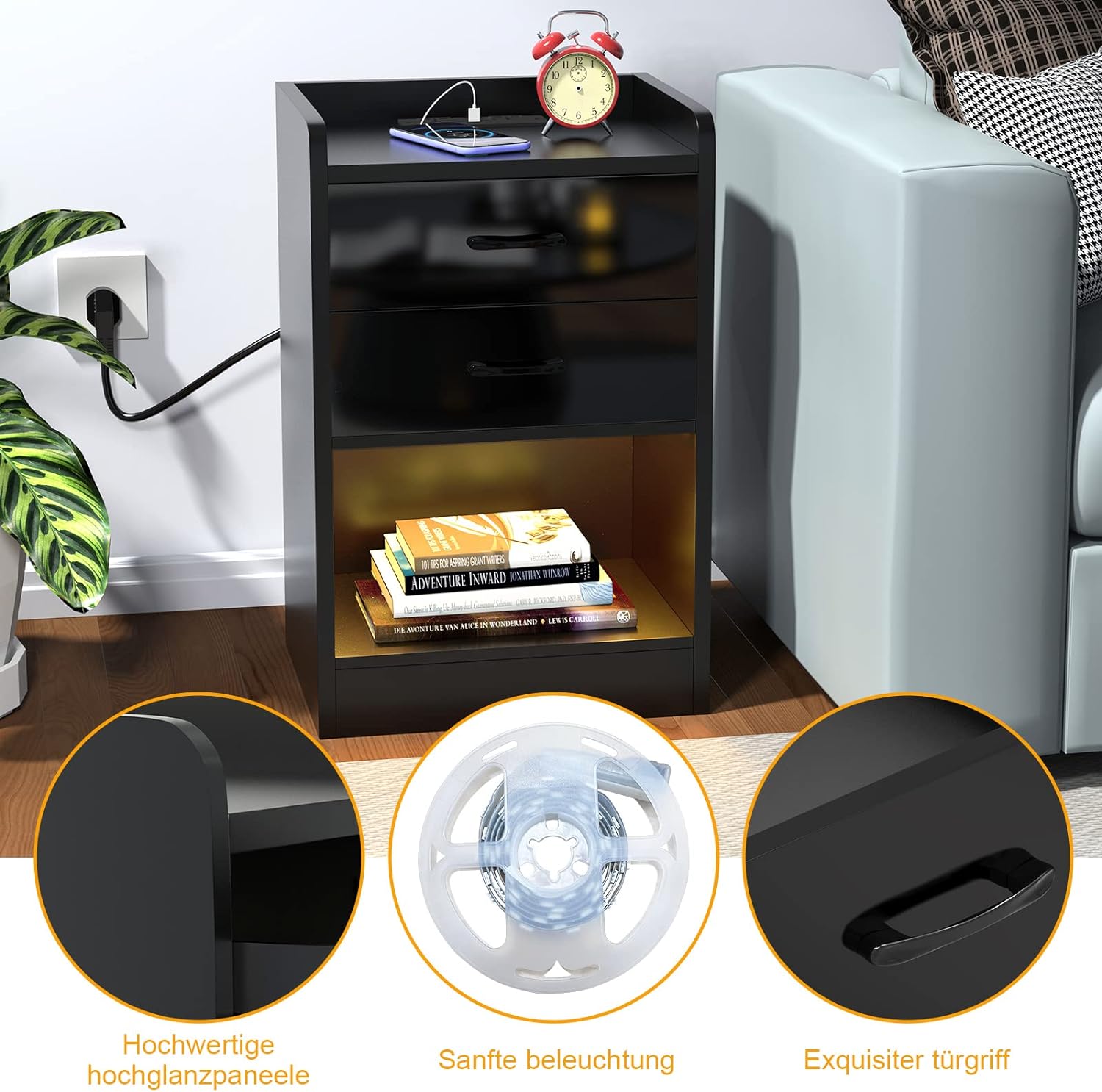 - 【Nachttisch aus Hochwertigem Material】Nachttisch besteht aus umweltfreundlicher Spanplatte mit einer Dicke von 16mm, stabiler und langlebiger ist. Fronten der Schubladen sind mit einer aufwendigen Hochglanzlackierung versehen, sich leicht reinigen