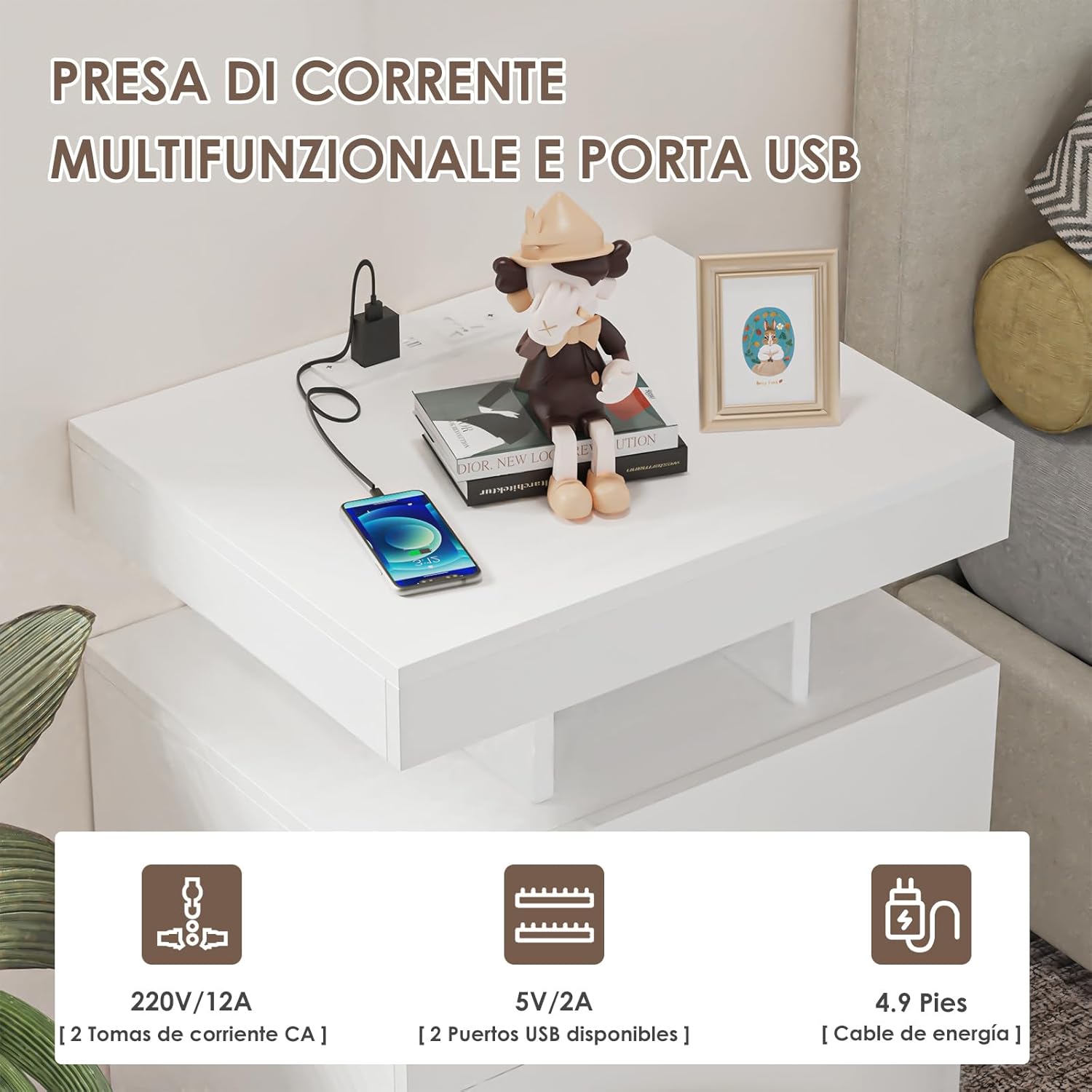 • 【Nachttisch mit Steckdose】Weiss Nachttisch Ladestation verfügt über 2 Standard Euro Steckdosen und 2 USB Anschlüsse, die das Aufladen von mobilen Geräten wie Handys, Tablets, Schreibtischlampen, Laptops, Mini Ventilatoren usw. einfach und