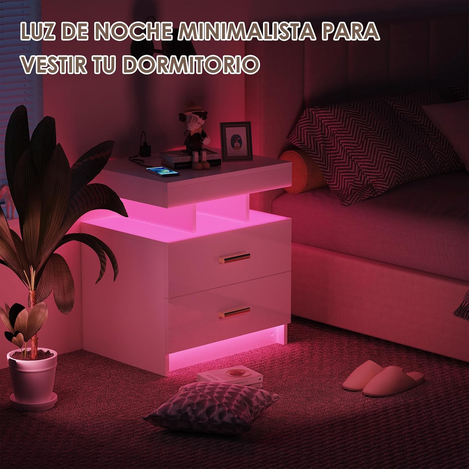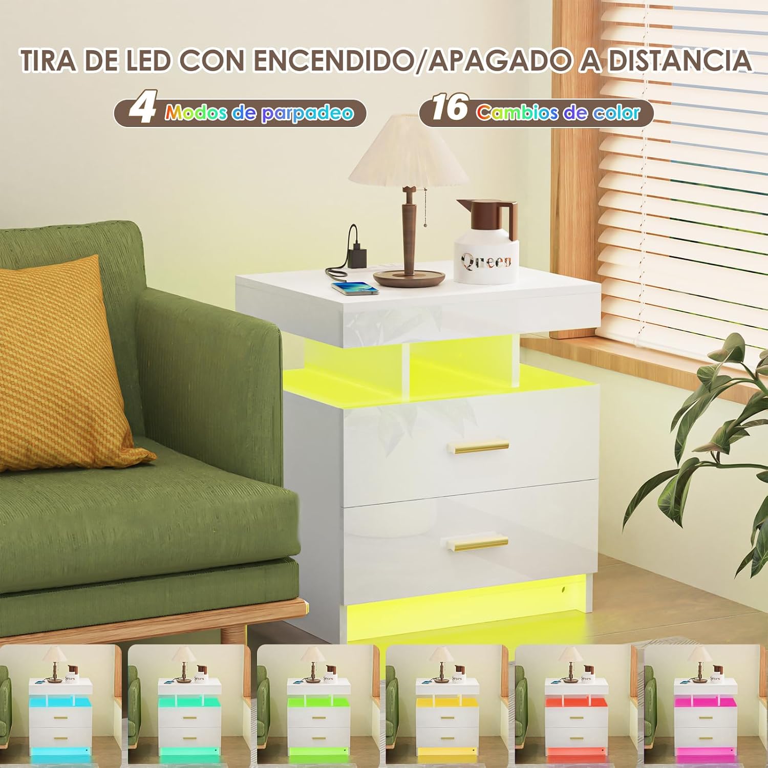 • 【Nachttisch mit LED Beleuchtung】Weiss Nachttisch mit LED-Beleuchtungsleiste und Fernbedienung, mit 16 Farbvariationen und 4 Lichteffekten wie Stroboskop und Überblendung, alles einfach per Fernbedienung steuerbar. Ändern Sie die Farbe, um sie an