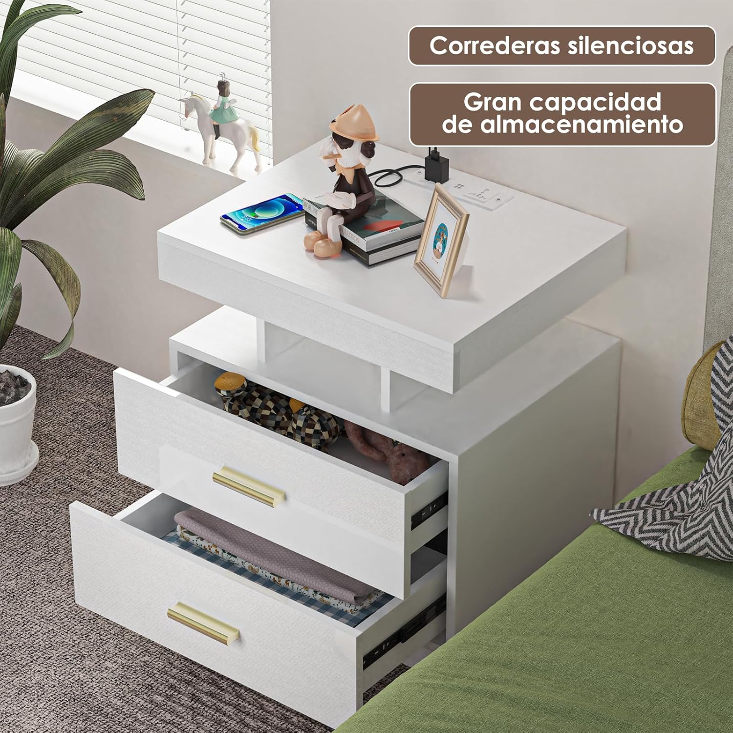 • 【Ausreichend Stauraum】Der Nachttisch mit Ladestation verfügt über zwei grosse Schubladen und eine offene Ablagefläche, die viel Stauraum bietet. In den Schubladen des Nachttisches können Sie Fernbedienungen, Snacks, Medikamente und vieles mehr