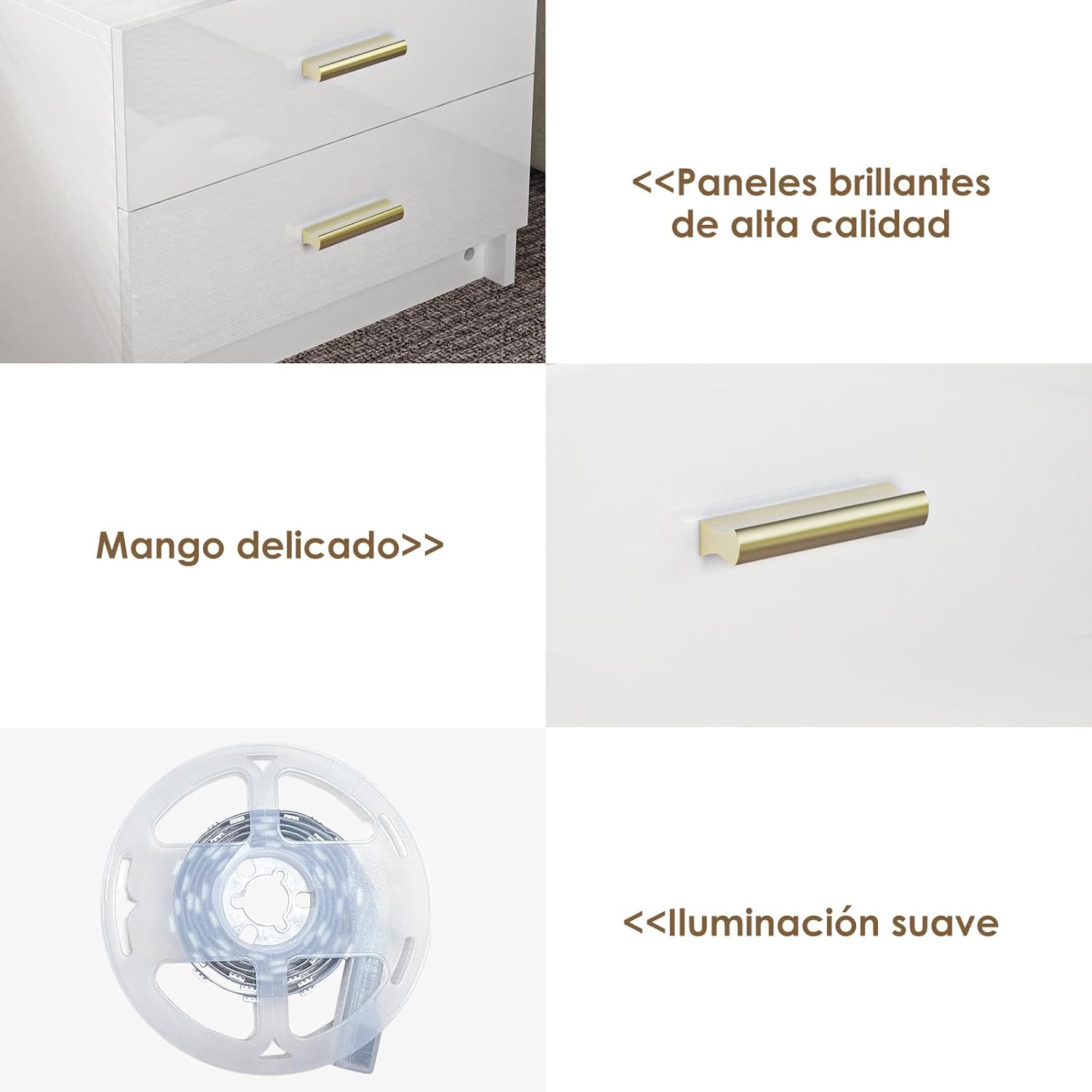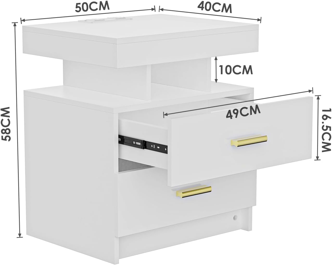 • 【Hochwertiges Material Nachttisch】Der LED Nachttisch besteht aus einer umweltfreundlichen Spanplatte mit einer Stärke von 16 mm, die stabiler und langlebiger ist. Die hochglänzenden Schubladenfronten und das matte Gehäuse sind leicht zu reinigen