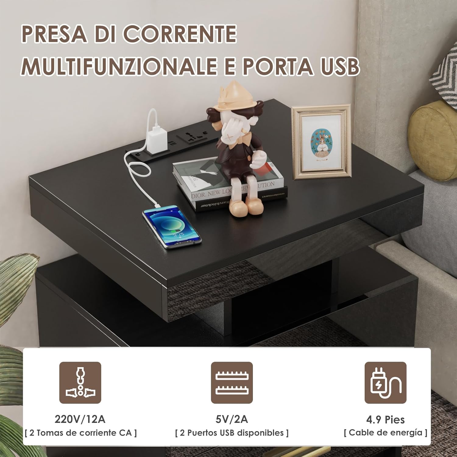 - 【Nachttisch mit Steckdose】Schwarz Nachttisch Ladestation verfügt über 2 Standard Euro Steckdosen und 2 USB Anschlüsse, die das Aufladen von mobilen Geräten wie Handys, Tablets, Schreibtischlampen, Laptops, Mini Ventilatoren usw. einfach und