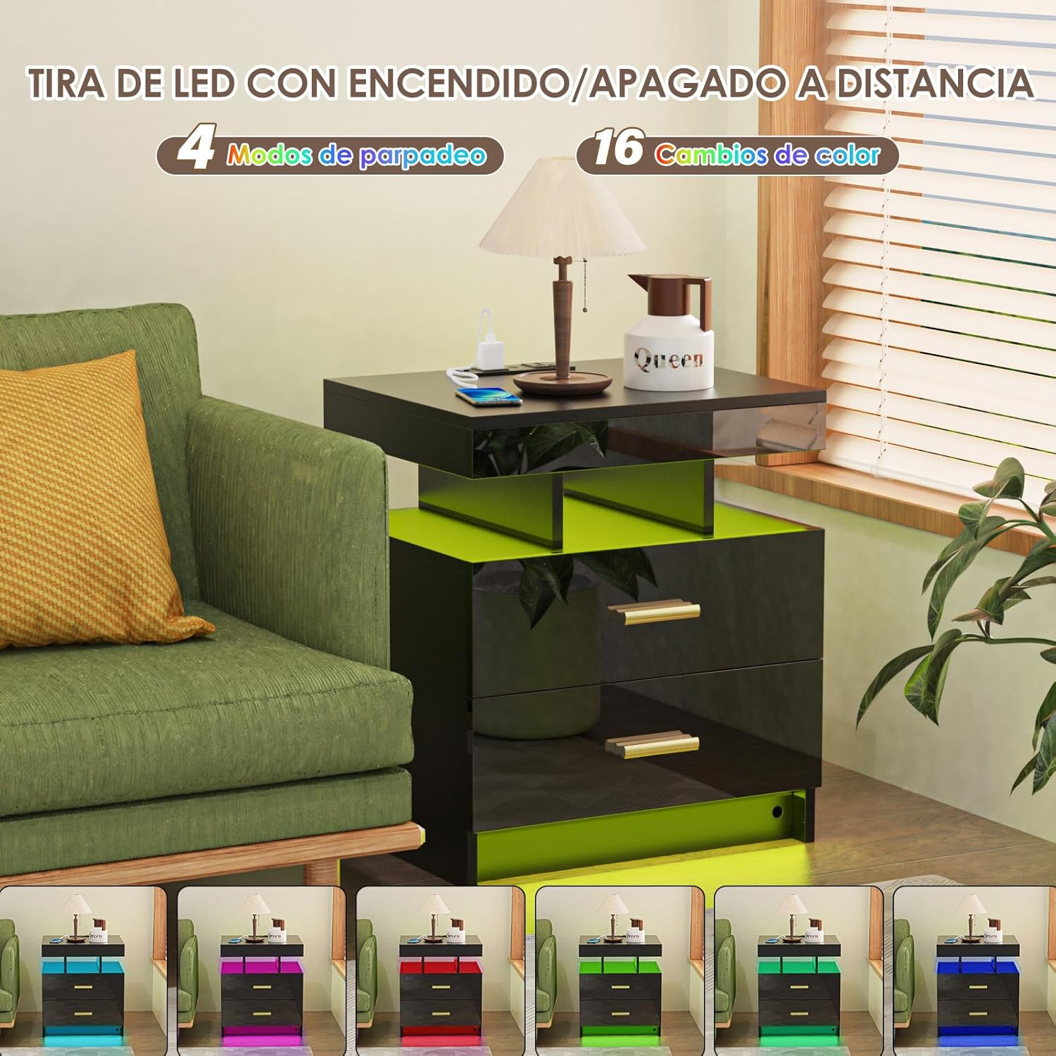 - 【Nachttisch mit LED Beleuchtung】Schwarz Nachttisch mit LED-Beleuchtungsleiste und Fernbedienung, mit 16 Farbvariationen und 4 Lichteffekten wie Stroboskop und Überblendung, alles einfach per Fernbedienung steuerbar. Ändern Sie die Farbe, um sie an
