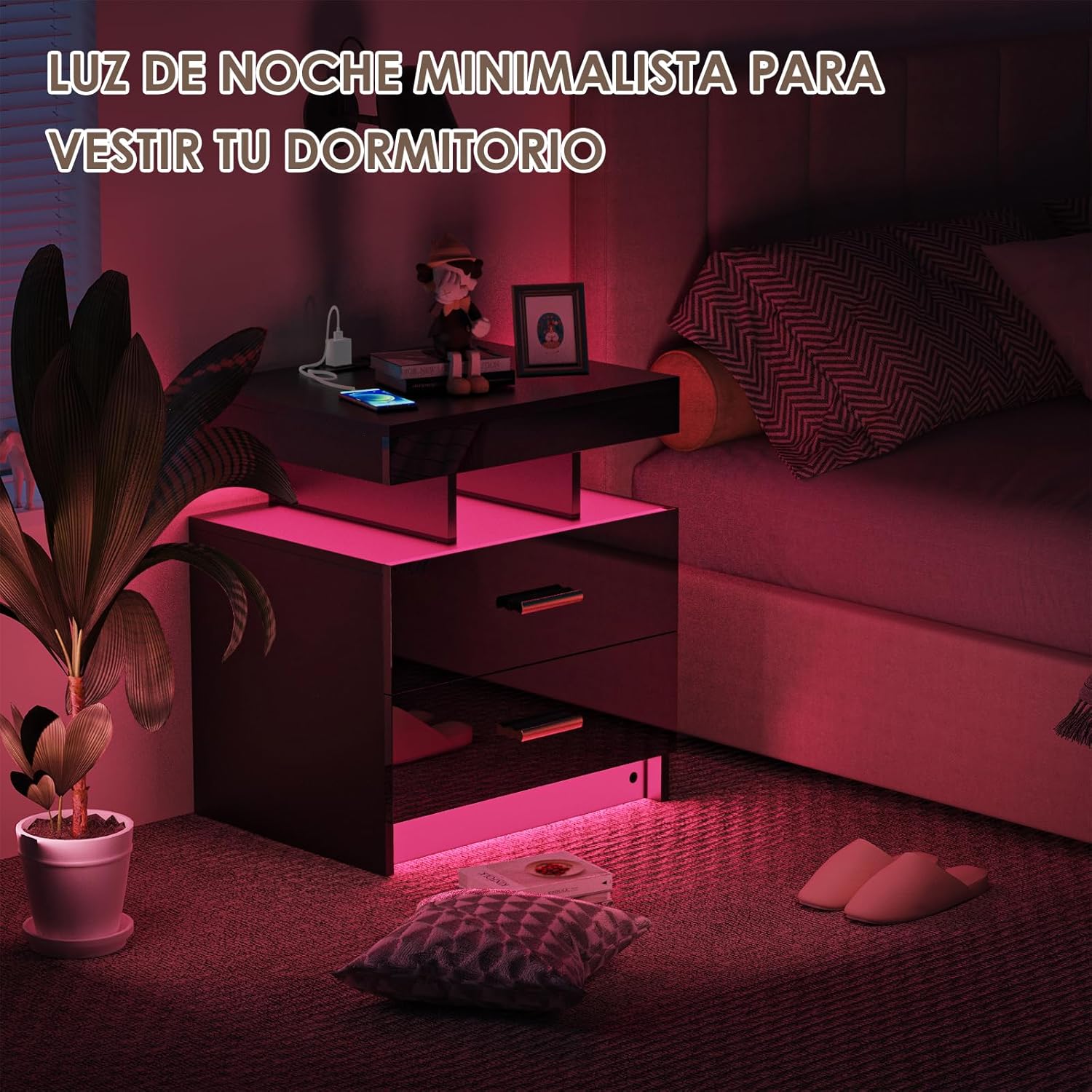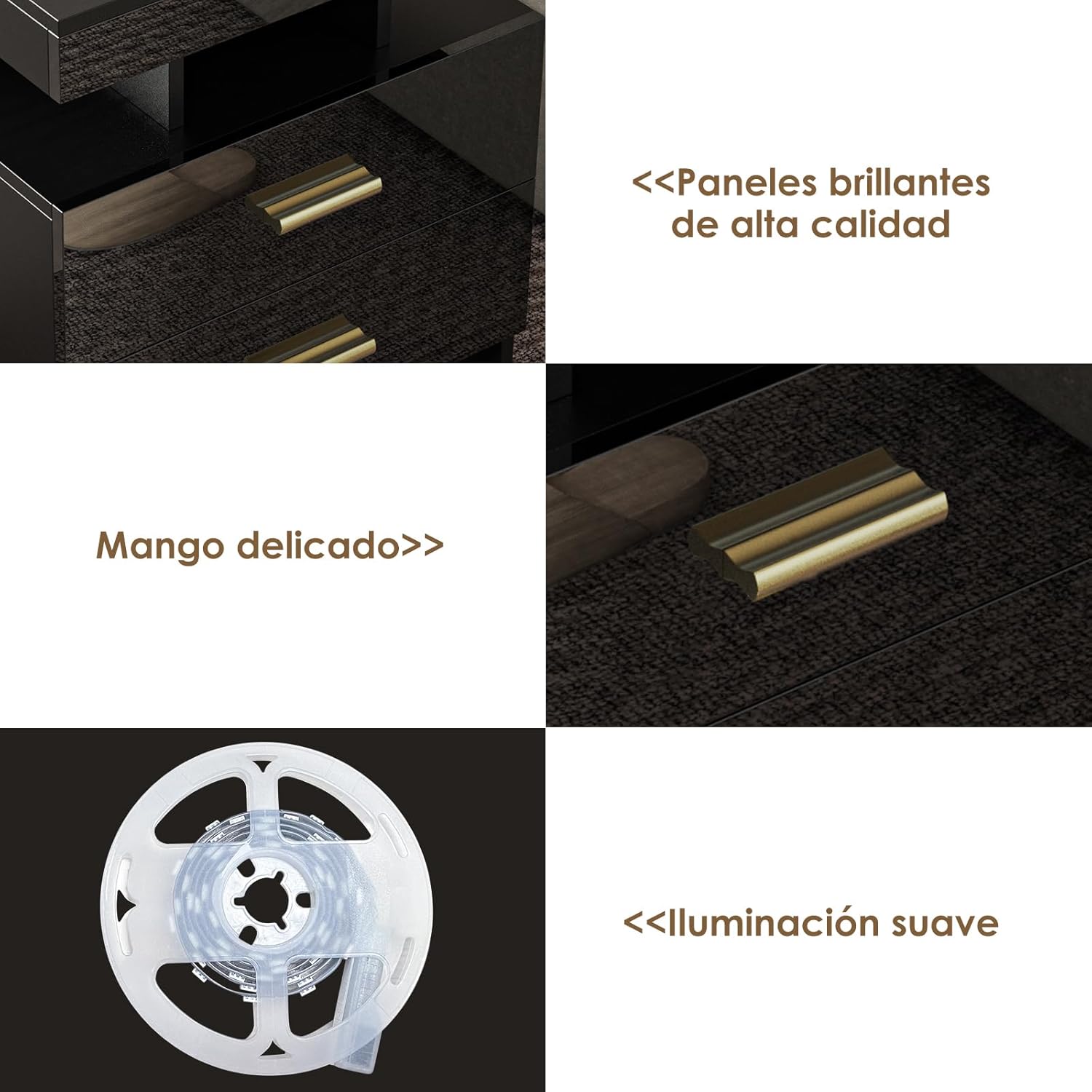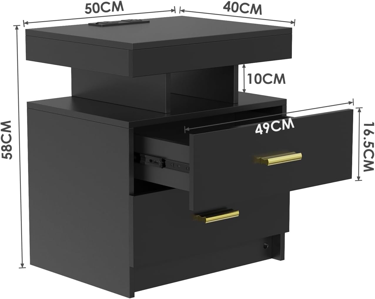 - 【Hochwertiges Material Nachttisch】Der LED Nachttisch besteht aus einer umweltfreundlichen Spanplatte mit einer Stärke von 16 mm, die stabiler und langlebiger ist. Die hochglänzenden Schubladenfronten und das matte Gehäuse sind leicht zu reinigen