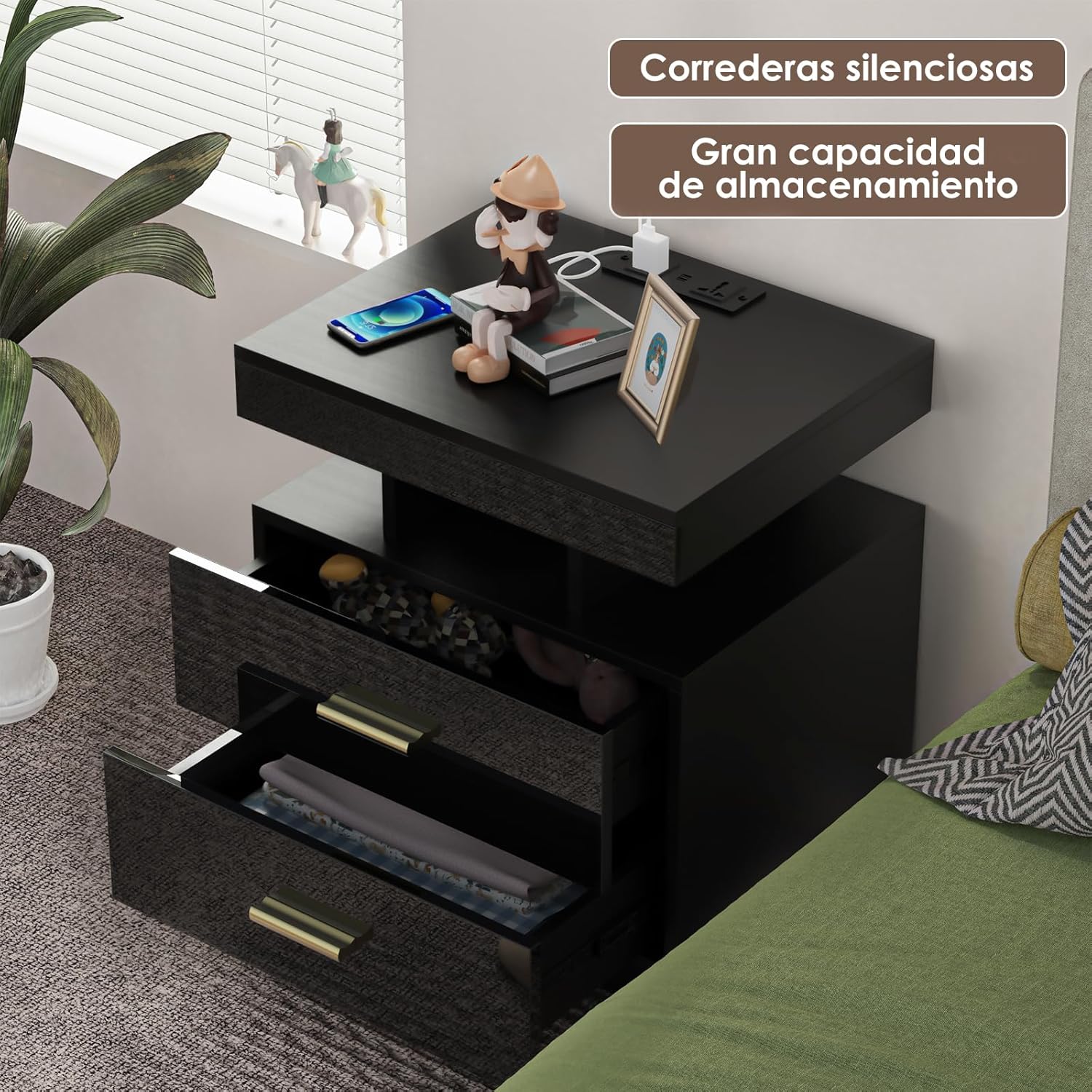 - 【Ausreichend Stauraum】Der Nachttisch mit Ladestation verfügt über zwei grosse Schubladen und eine offene Ablagefläche, die viel Stauraum bietet. In den Schubladen des Nachttisches können Sie Fernbedienungen, Snacks, Medikamente und vieles mehr