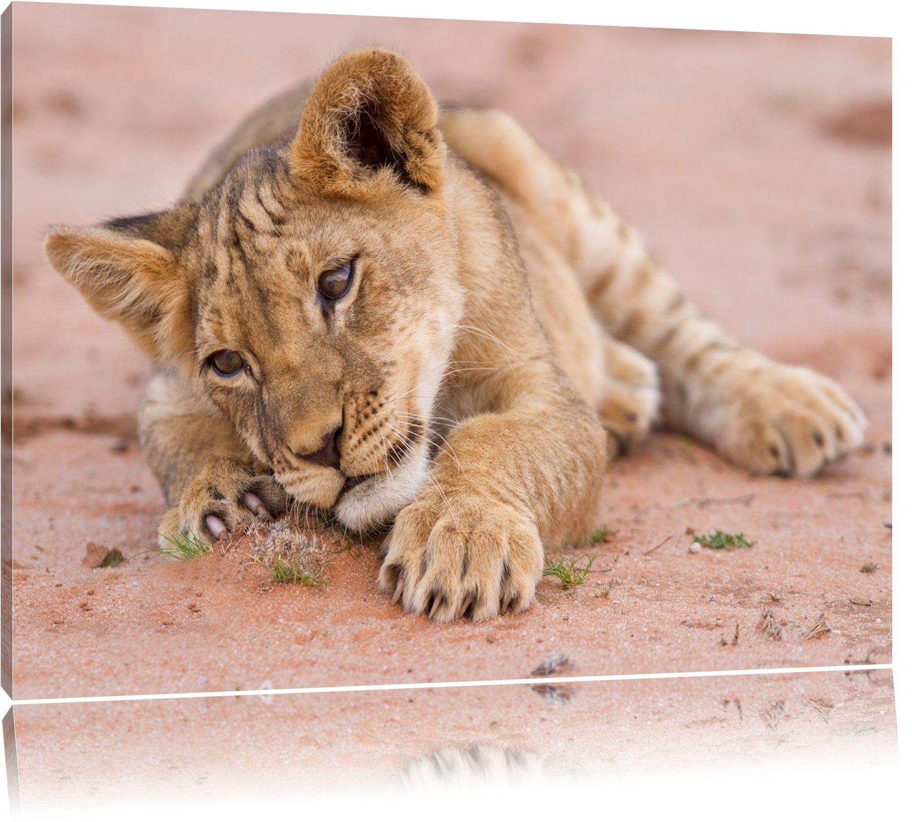 Löwenbaby spielt Format: 100x70 auf Leinwand, XXL riesige Bilder fertig gerahmt mit Keilrahmen, Kuns