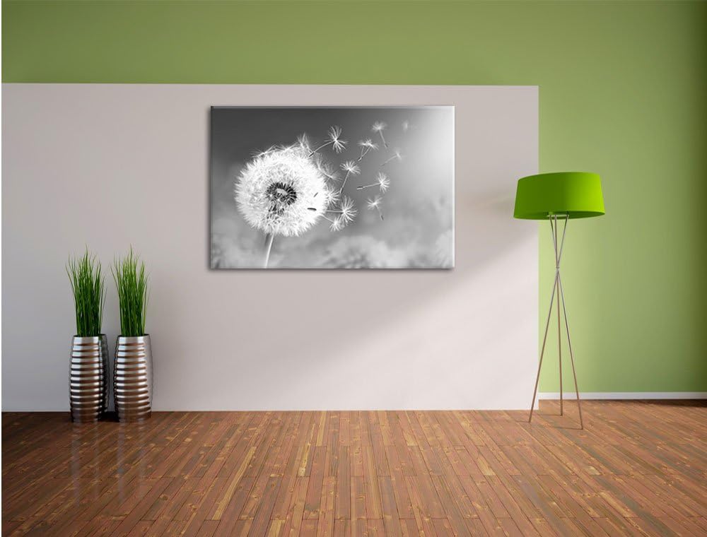 Löwenzahn Samen Kunst B&W, Format: 100x70 auf Leinwand, XXL riesige Bilder fertig gerahmt mit Keilra
