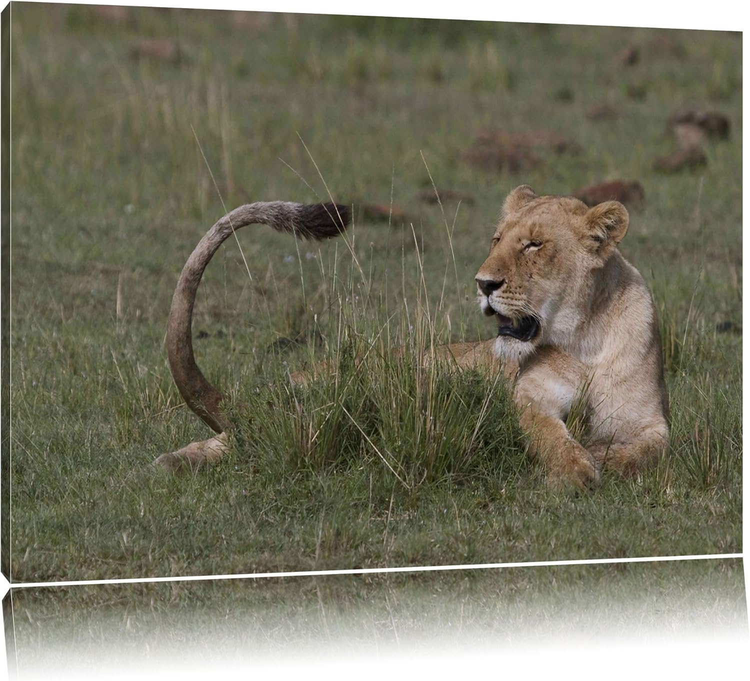 Löwin entspannt im Gras Leinwand, XXL riesige Bilder fertig gerahmt mit Keilrahmen, Kunstdruck auf W