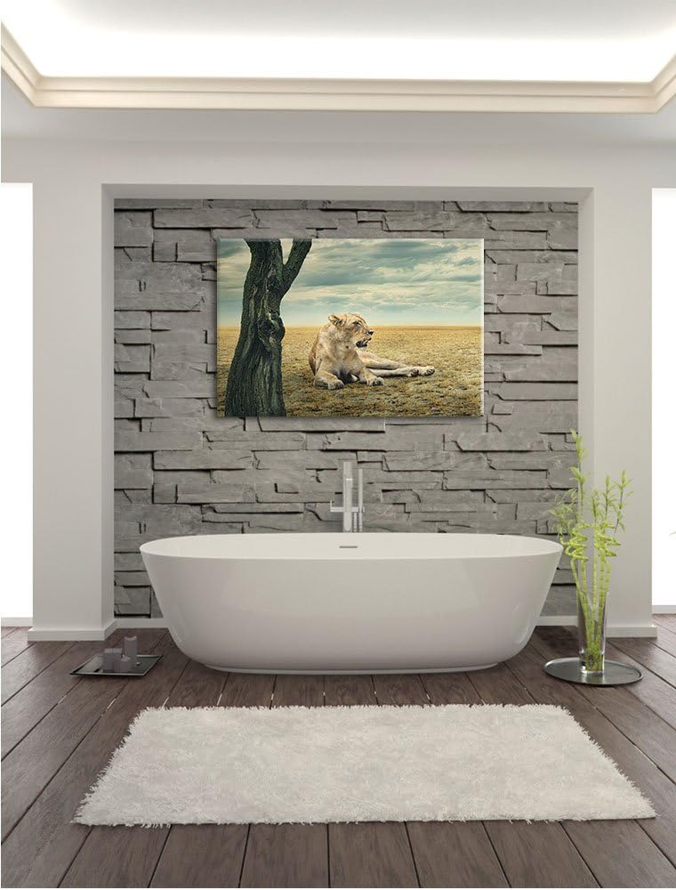 Löwin Ruhe Savanne, Format: 100x70 auf Leinwand, XXL riesige Bilder fertig gerahmt mit Keilrahmen, K