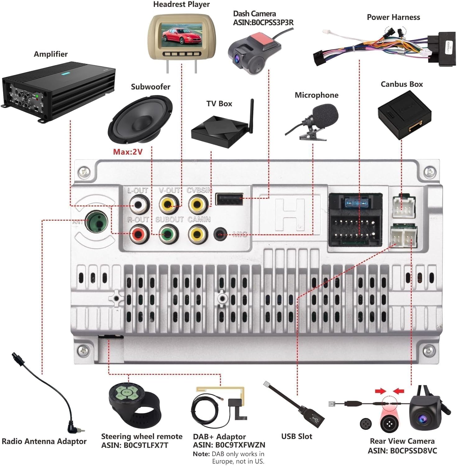 - 【Andere Hauptfunktionen】1. Unterstützt Android/IOS-Handy-Spiegelverbindung, diese Funktion kann Videos oder andere Inhalte auf dem 7-Zoll-Bildschirm synchronisieren; 2. Eingebauter 16set-EQ-Modus, unterstützt Jazz-, Rock-, Pop-, Klassik- und andere EQ-Szenenwechsel; 3.Extra USB-Steckplatz, Sie können auf U-Disk gespeicherte Musik hören oder Ihr Telefon schnell aufladen.
