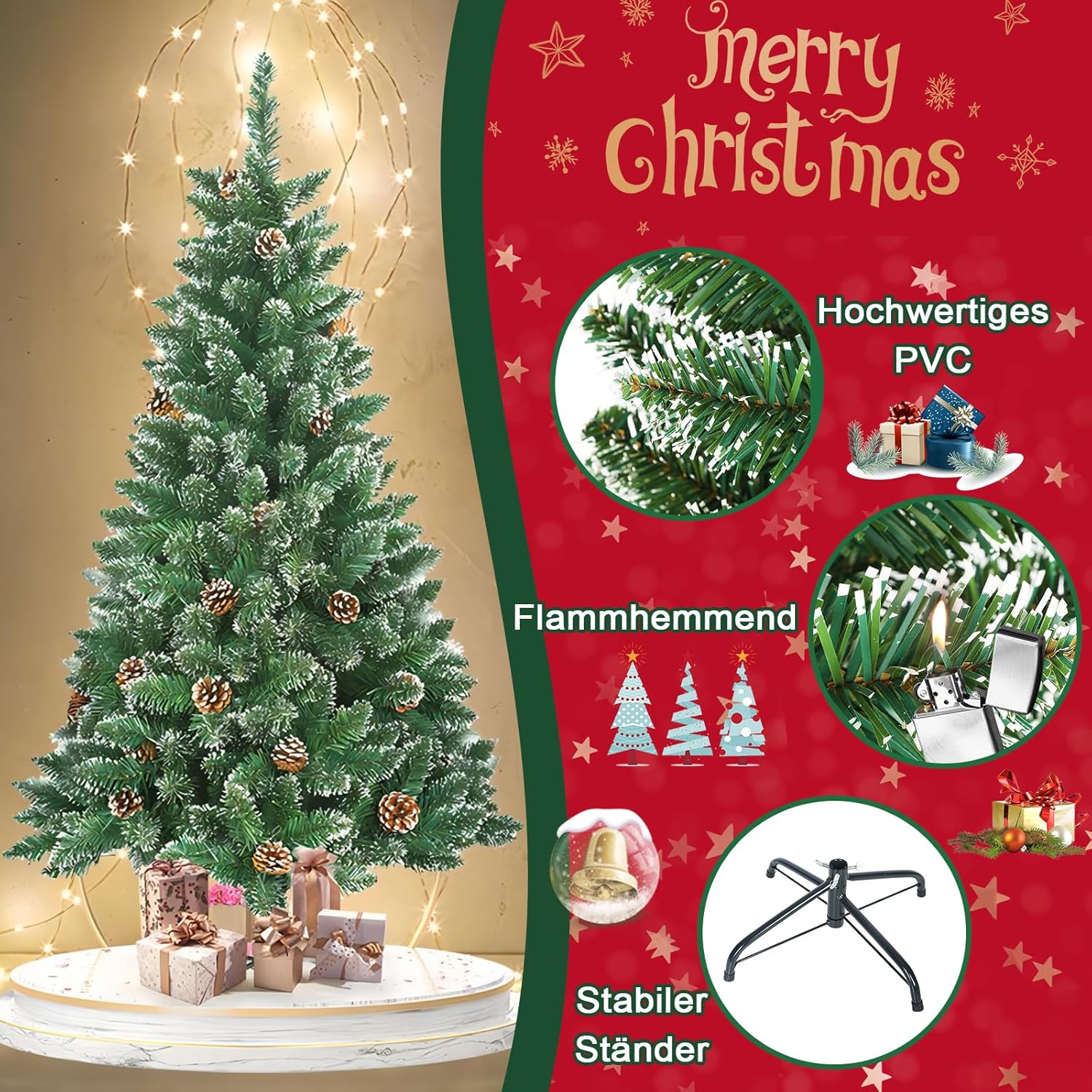 - Das Weihnachten mit Schnee-Effekt mit Kiefernzapfen ist 180cm hoch mit 500 Zweigspitzen. Inspiriert von echten Kiefer Nadelbäumen - Spitzen sind leicht weiss getönt, dadurch wirkt der Baum als würde auf Ihm Schnee liegen.