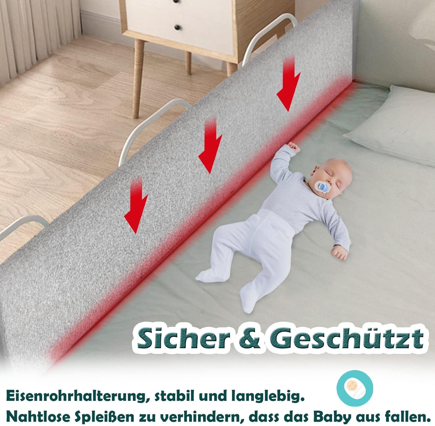 - Sicherheit und Komfort:Dieses Rausfallschutz Bett besteht aus hochwertigem Stahlrahmen und umweltfreundlicher EPE-Perlenbaumwolle, was eine stabile Struktur und hochwertige Unterstützung gewährleistet. Es verhindert nicht nur effektiv, dass das Baby