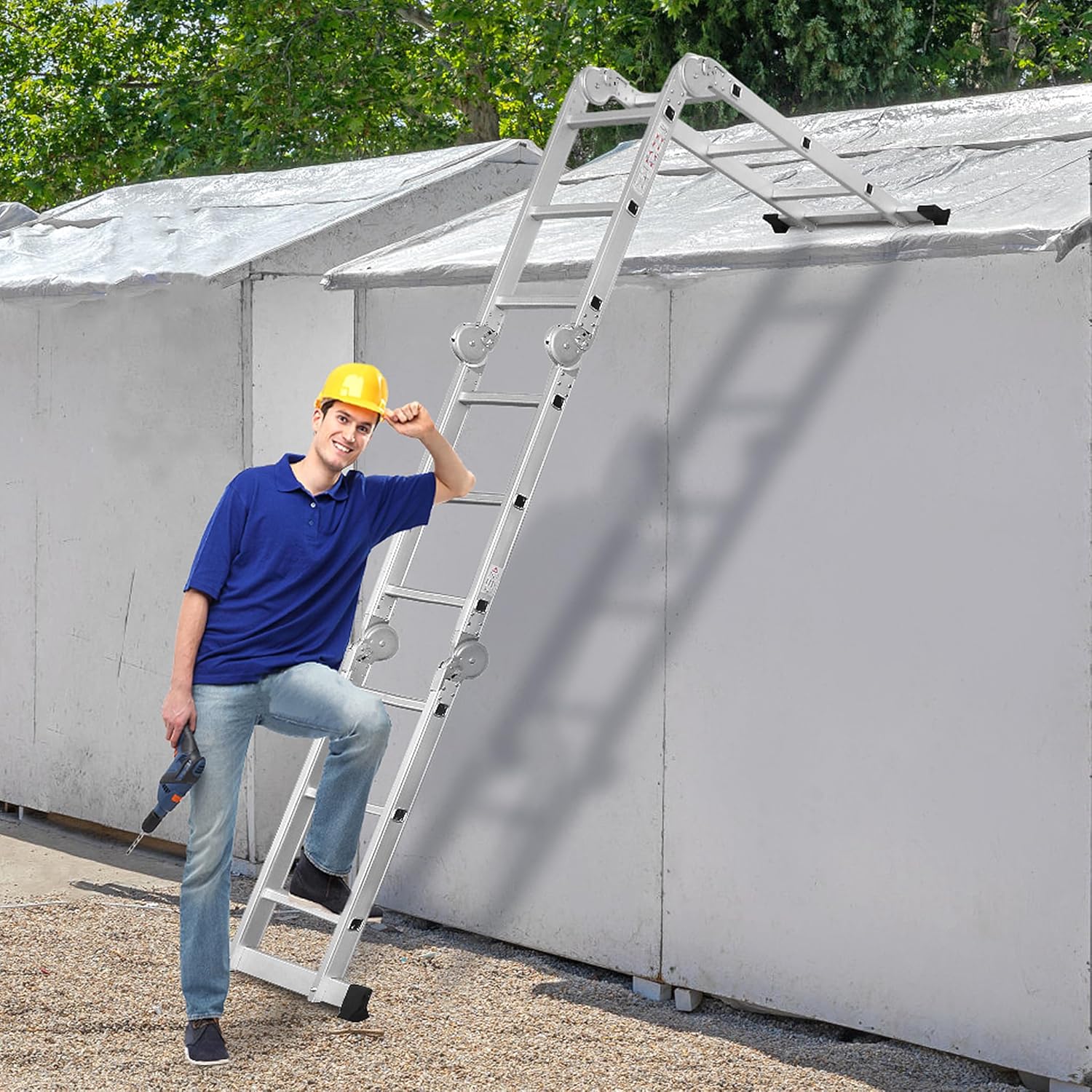 - 550cm Mehrzweckleiter mit 2 Plattformplatten, flexible Leiter für Arbeiten auf Treppen oder unebenen Oberflächen.