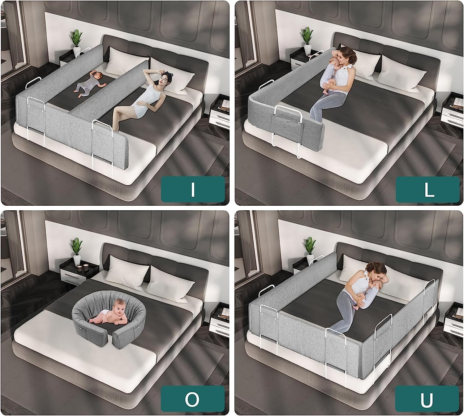 - Vielseitige Verwendungsmöglichkeiten:Im Vergleich zu anderen Bettgittern kann dieser Kinderbett Rausfallschutz flexibel in verschiedene Formen wie I, L, O und U geformt werden oder als separate Stangen und weiche Polster verwendet werden. Er kann als