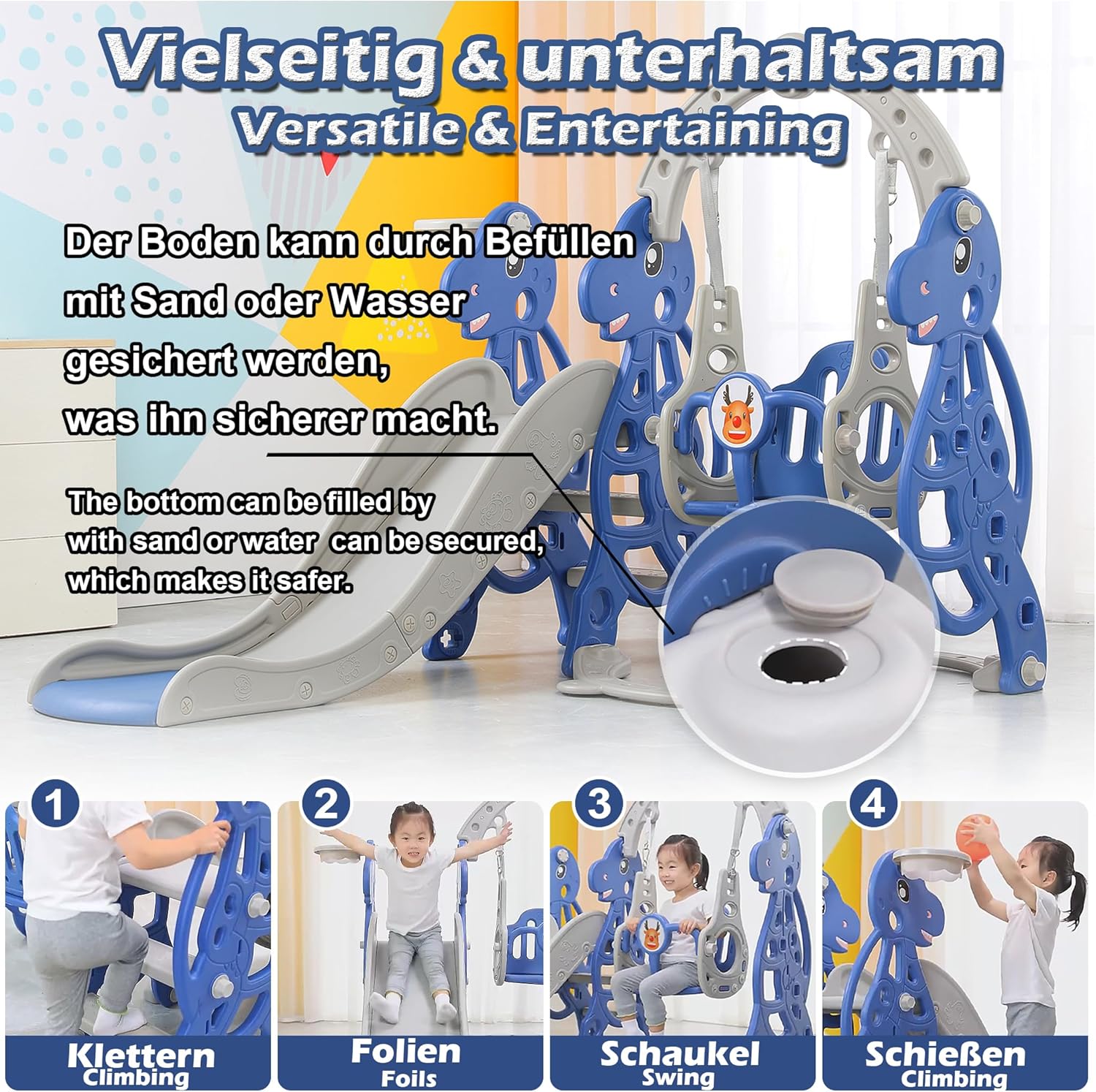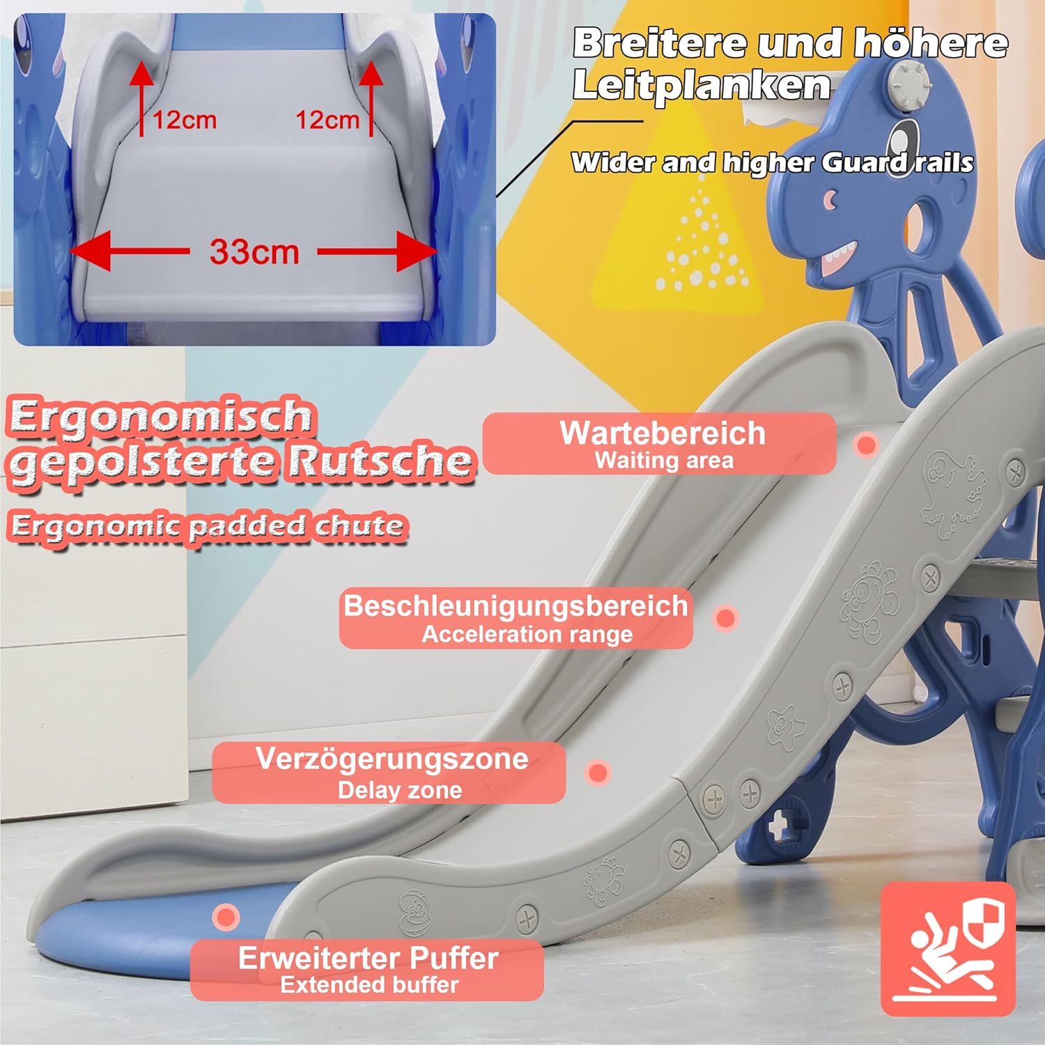 - 【Multifunktionale Kinderrutsche】Die Kleinkinderrutsche kann in wenigen Minuten ohne zusätzliches Werkzeug aufgebaut werden. Leuchtende Farben und ein niedlicher Look sorgen dafür, dass Babys das Rutschen, Krabbeln, Schaukeln und Basketballspielen