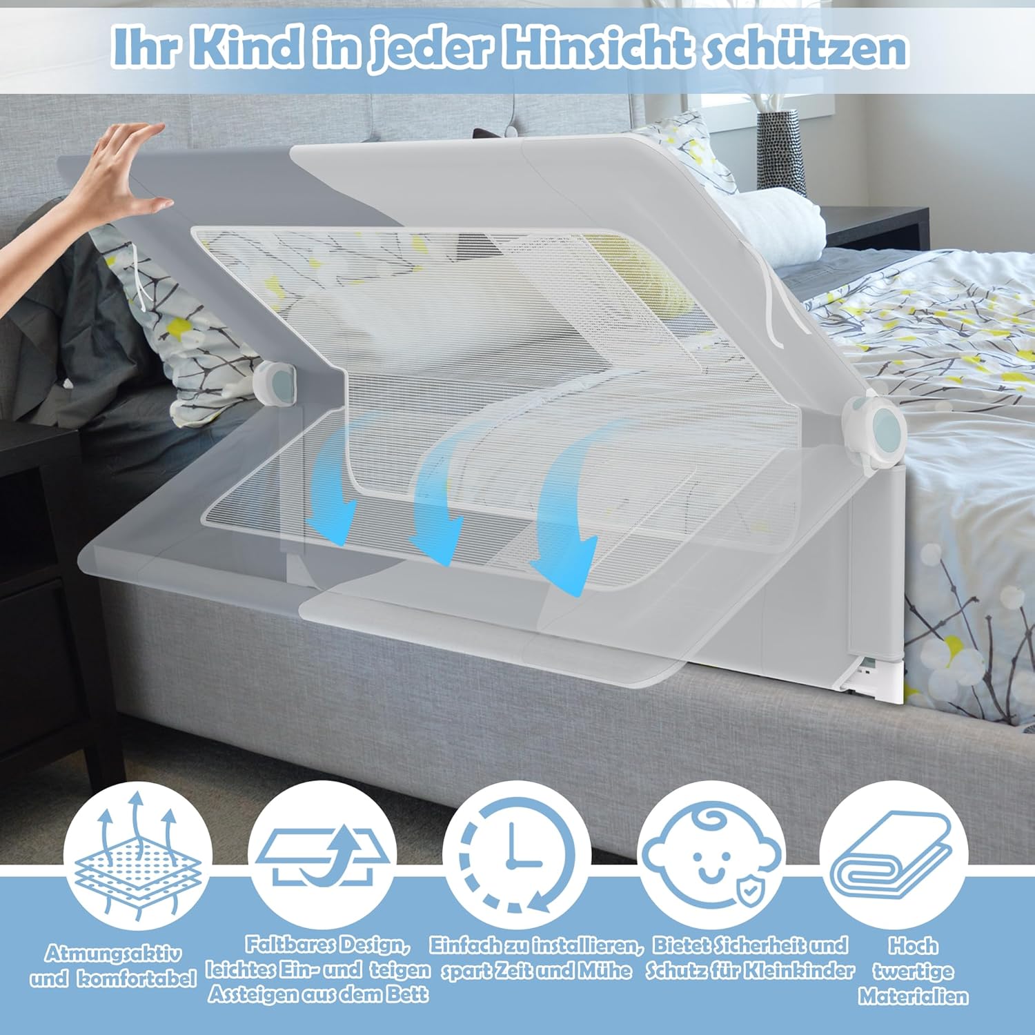 - SMART KLAPPBAR DESIGN: Der verdickte und fein verarbeitete Bettgitter Rausfallschutz bietet zuverlässigen Schutz während des Schlafs und verhindert effektiv, dass Kinder beim Rollen aus dem Boxspringbett fallen. Wenn es nicht benutzt wird, kann das