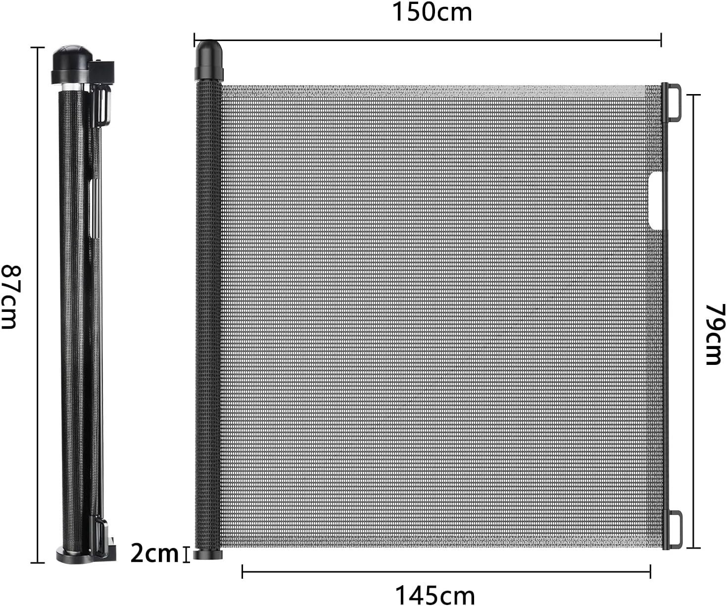 - Ausziehbares design: Diese kinderschutzgitter für treppen ist bis zu 150 cm Breite ausziehbar und ist 87 cm hoch. Einziehbares türschutzgitter kann bei Nichtgebrauch komplett eingezogen werden, wodurch Sie Platz sparen