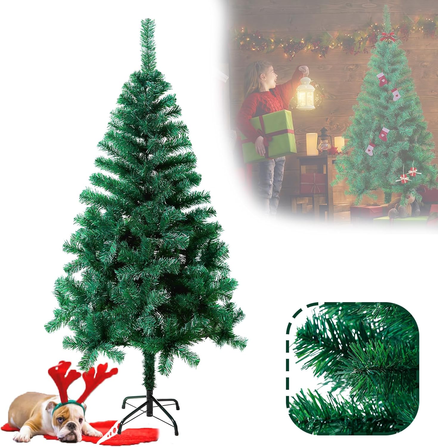 • Das Weihnachten Grün PVC ist 150cm hoch mit 300 Zweigspitzen. Inspiriert von echten Kiefer Nadelbäumen - Spitzen sind leicht weiss getönt, dadurch wirkt der Baum als würde auf Ihm Schnee liegen.