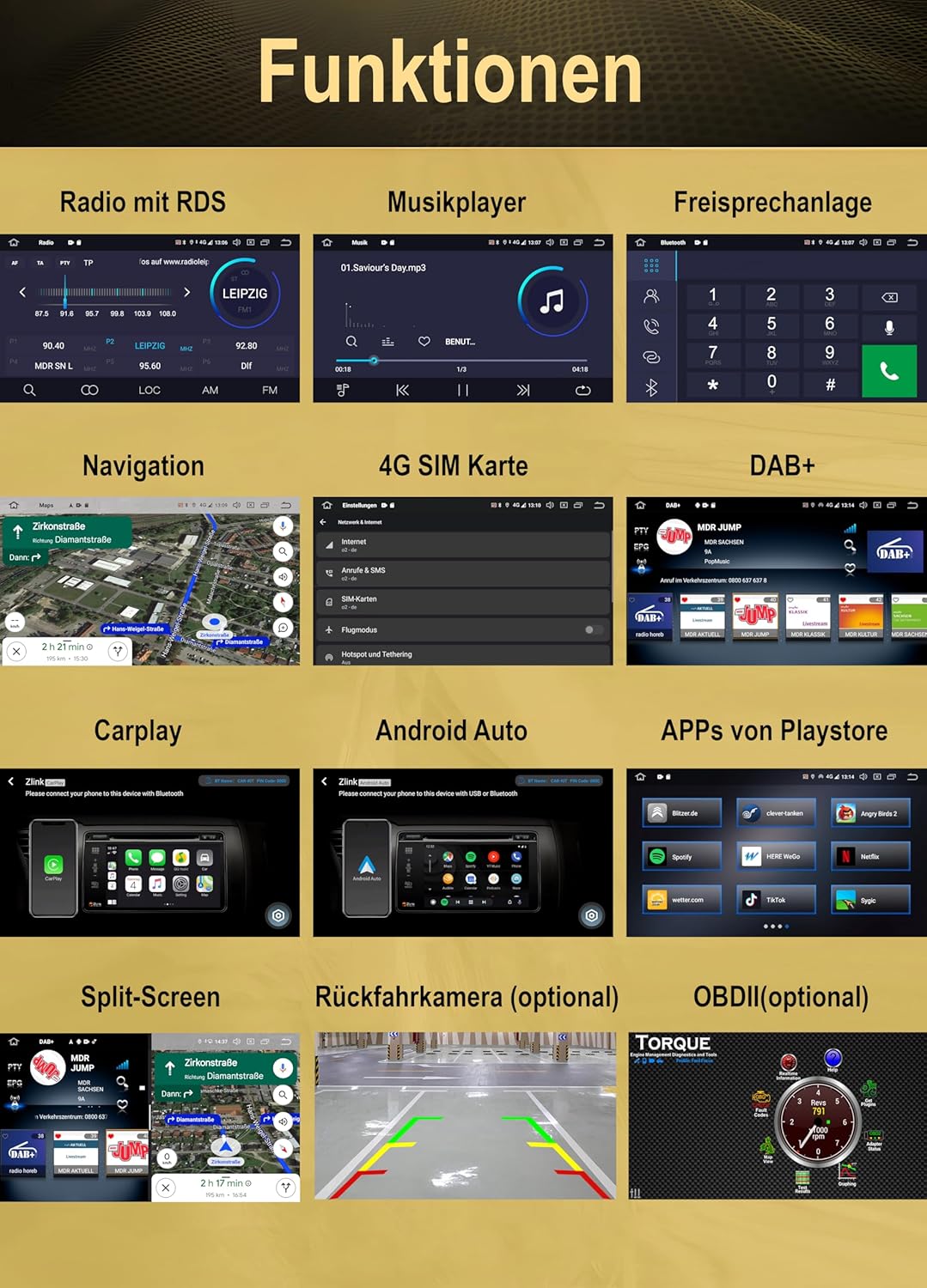 • Rundum-Sorglospaket: Navigation, DAB+ (Digitalradio),Spotify,clevertanken,Mirrorlink,google map und Blitzer.de sind bereits vorinstalliert und betriebsbereit, Unterstützt:SIM-Karte OBD,PDC,LKF,MFA,Dynaudio,RDS,Wlan,Rückfahrkamera(für org. Kamera RFK-Decoder notwendig),Subwoofer,Tastenbeleuchtung auswählbar