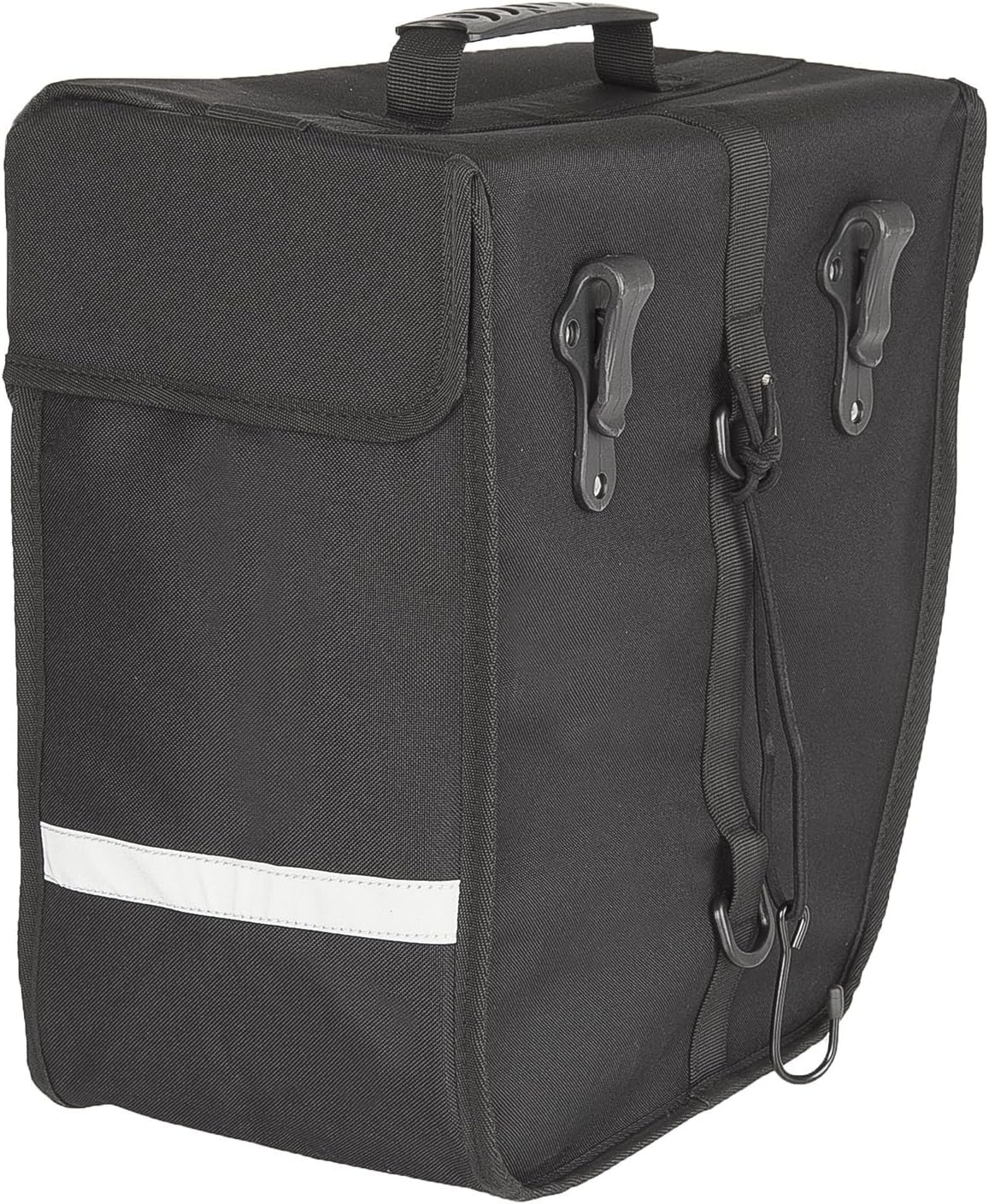 PRODUKTBESCHREIBUNGEN M-Wave Amsterdam Single Einfachtasche - Material: 600 D reissfest - Farbe: schwarz/grau - Masse: 38 x 18 x 30 cm (L x B x H ) - Volumen: ca. 18 Liter - grosse Tasche mit Schnellverschlüssen - Reflexstreifen und Tragegriff - Schnellbefestigung durch 2 Haken und 1 Spanngummi - verstellbar von 24 - 29 Zoll - mit Sicherheitsfüssen und Befestigungsschrauben - Gewicht je Tasche: 550 g