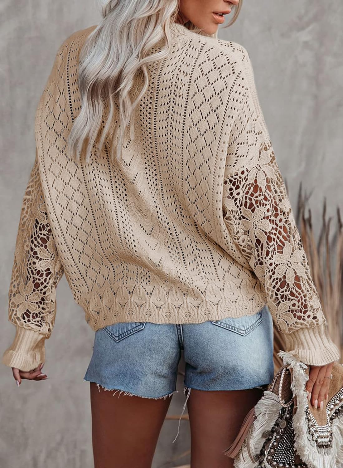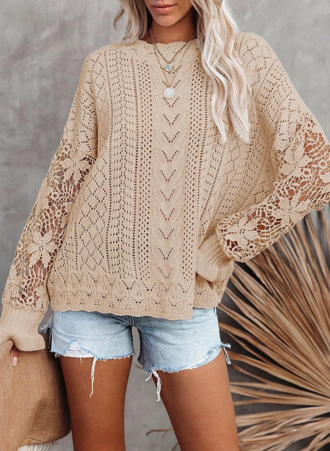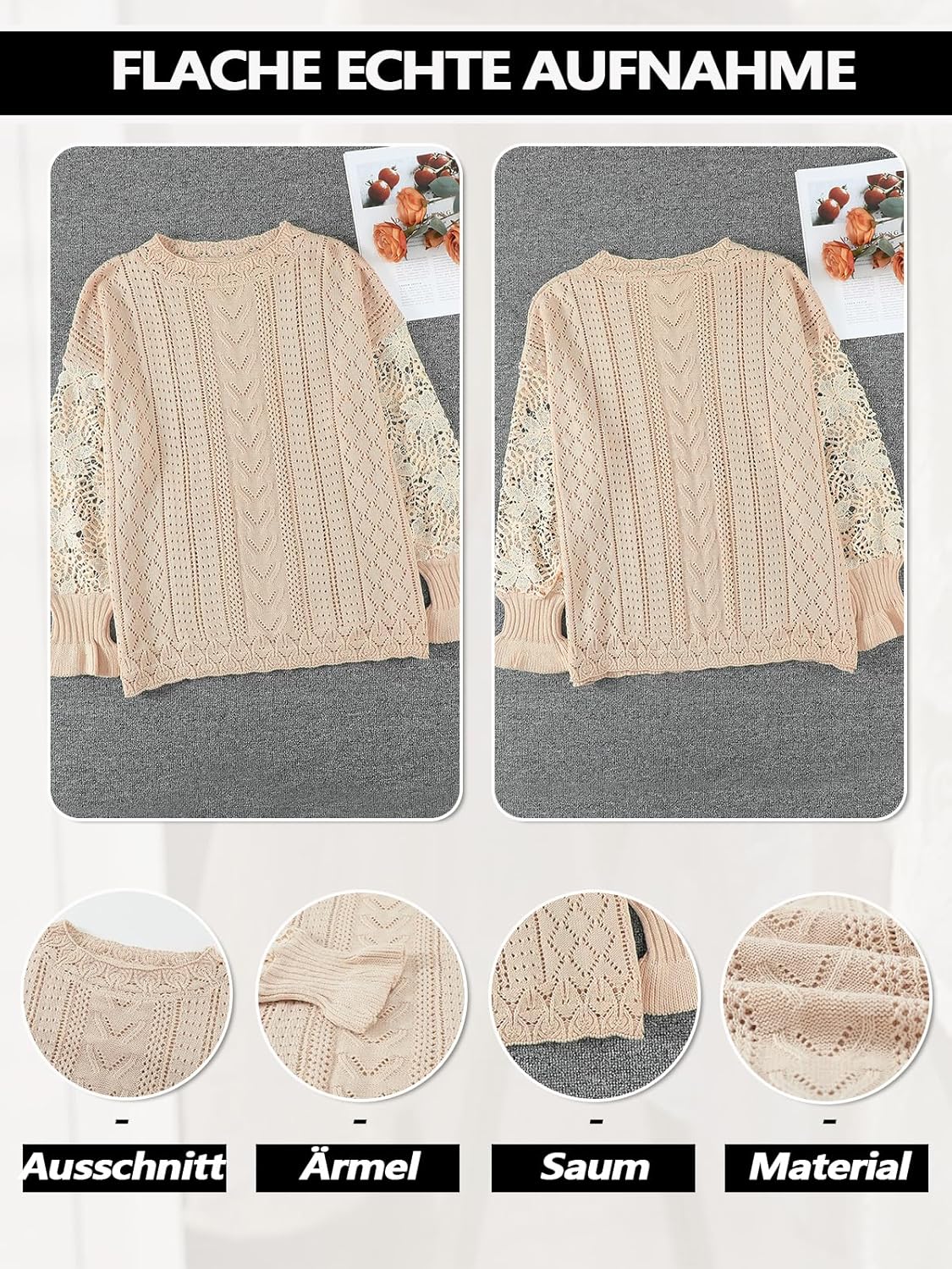 - Eigenschaften: Spitze Langarmshirts, Lässige Rundhals, Langarm Häkelpullover, Elegantes Einfarbig, Casual Patchwork Herbst Winter Pullover